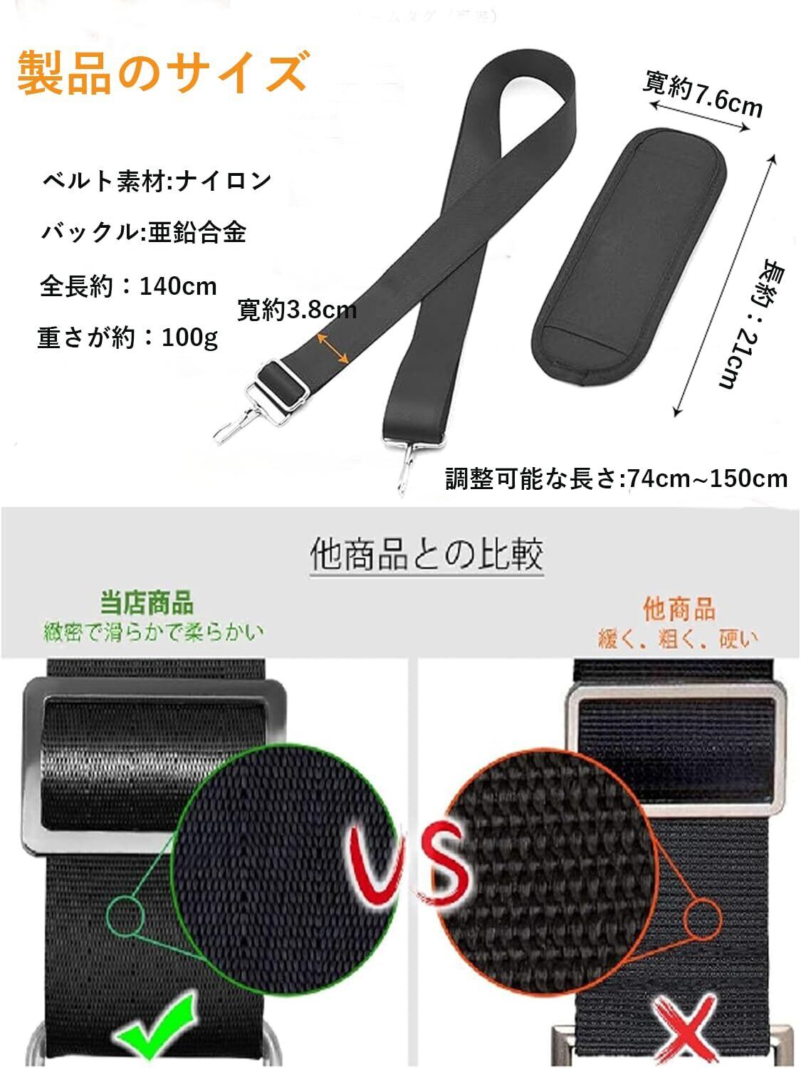 [Marcea] ショルダーストラップ ショルダーベルト140cm 肩掛けベルト バッグ用 単品 水筒 ストラップ ショルダーバッグ 紐 太め バッグのヒモのみ メッセンジャーバッグ、PC バッグ、カメラケース、ビジネスバッグ、スポーツバッグ、ツールバッグ、ギターバッグ など