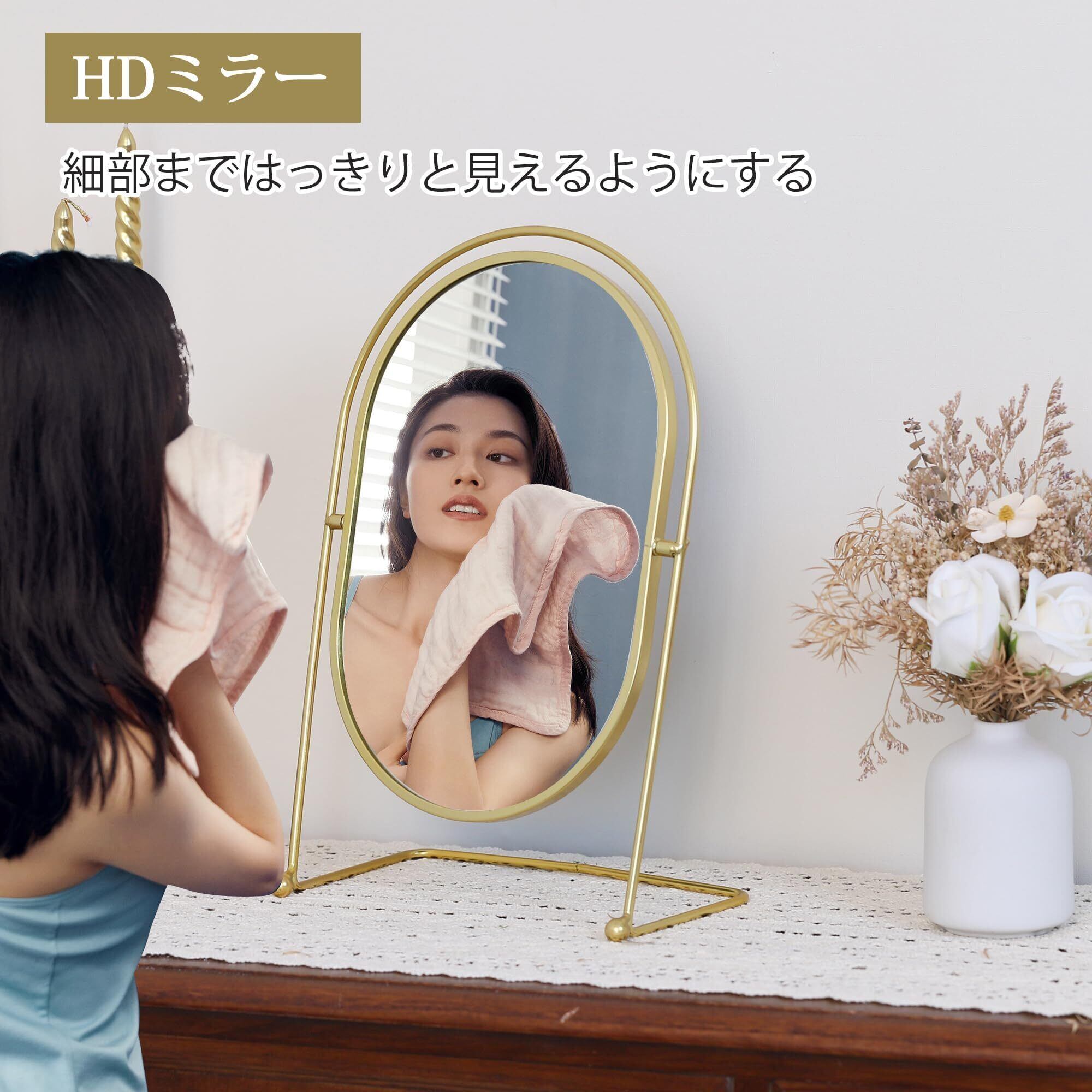【HD卓上ミラー】クリアな映りのミラー。顔の細部まで鮮明に映し出し、メイクの精度を向上させます。卓上ミラーはシンプルで軽量なデザインで、化粧鏡&スタンドミラー卓上としても使えます。
