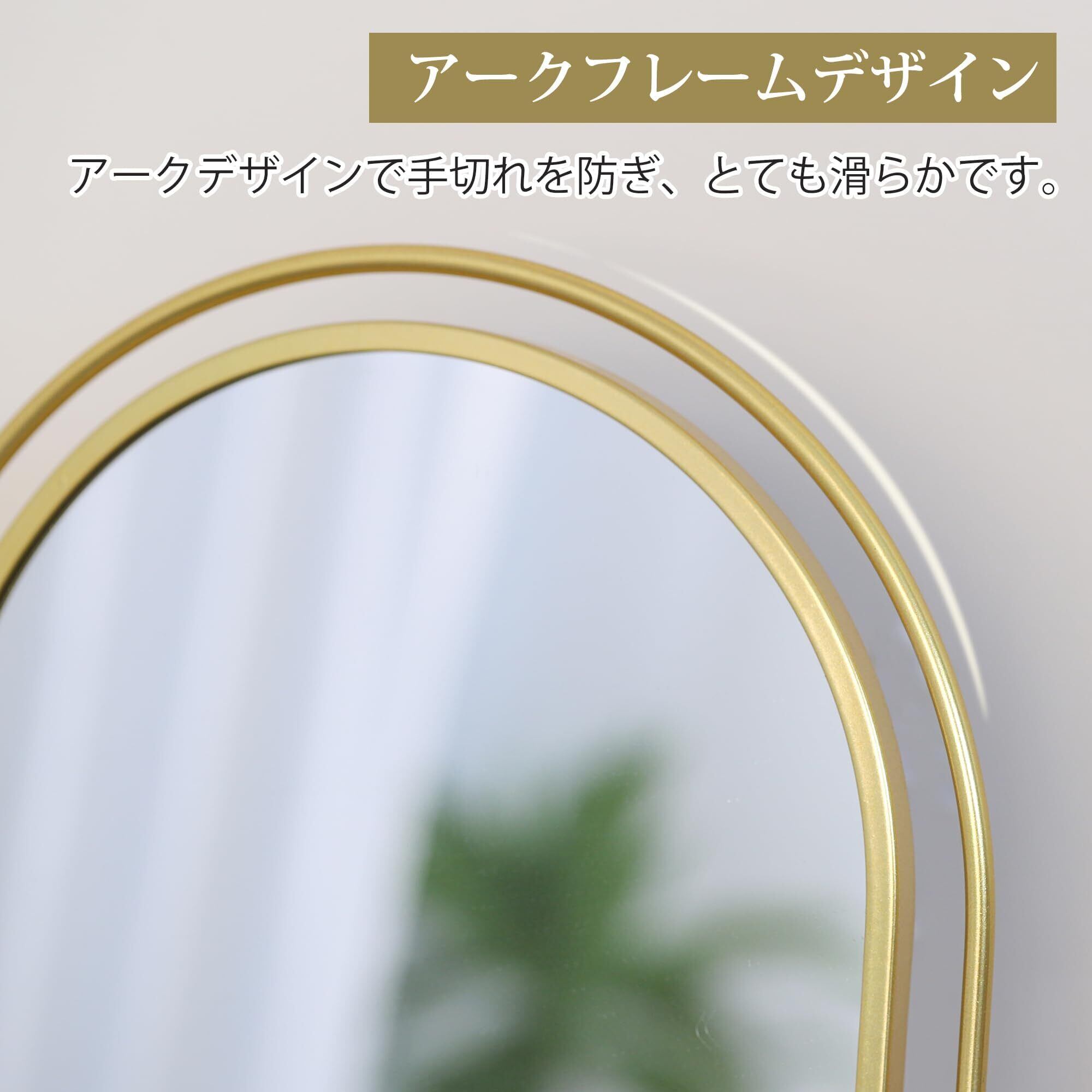 Browgrow 化粧鏡 卓上鏡 金属 卓上ミラー スタンドミラー メイクミラー 卓上 置き鏡 360度回転 おしゃれ(楕円形 ゴールド)