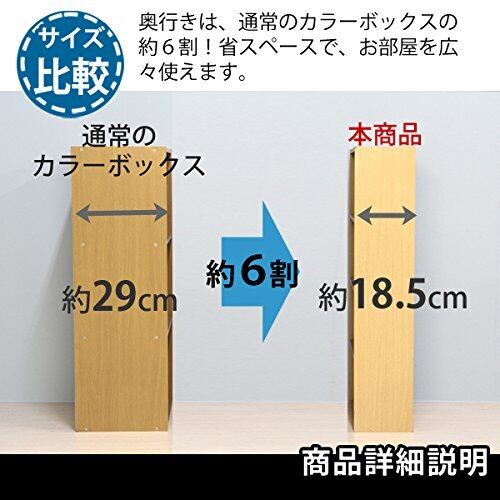 奥行18.5cmで、書籍やDVDの収納に適したデザインです。