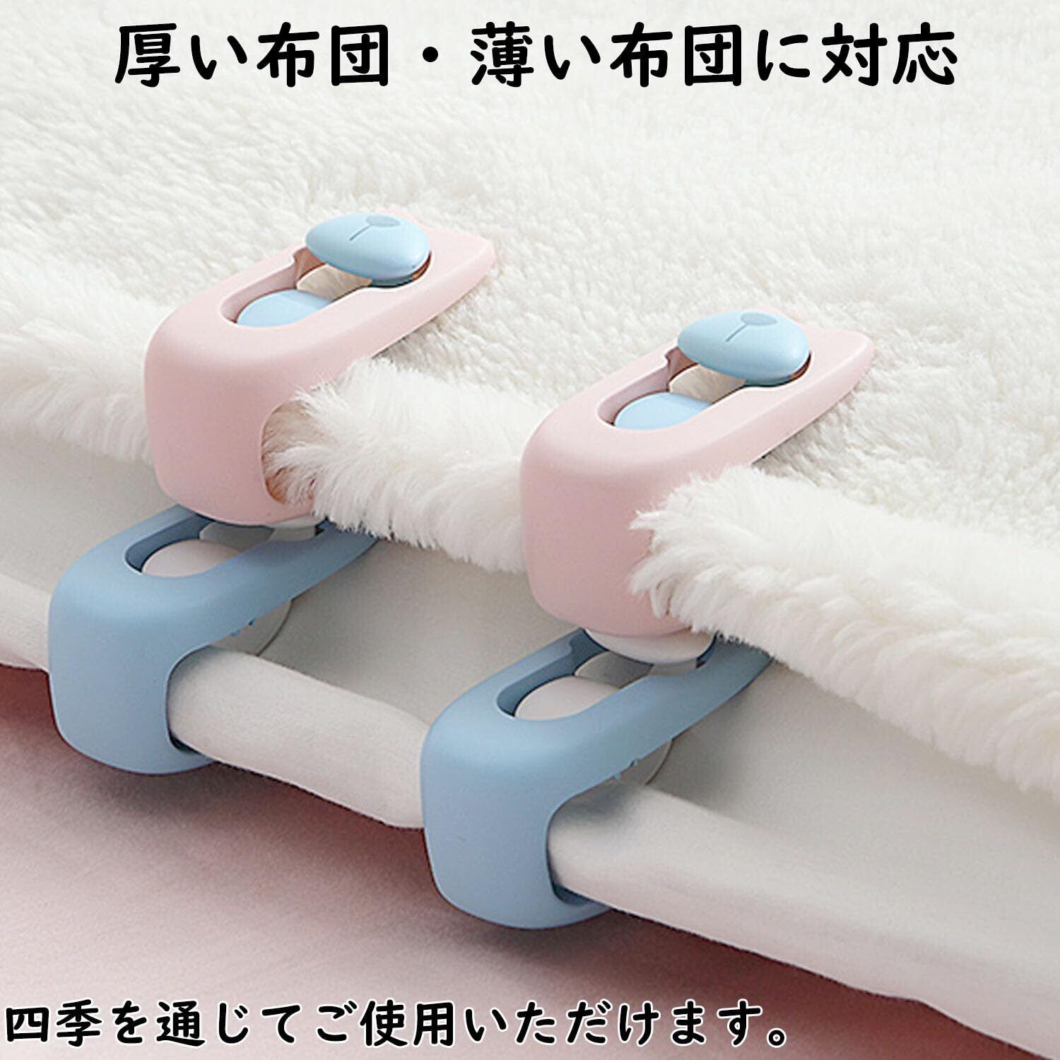 【布団ずれ防止】この布団クリップを使えば、毛布と掛布団をしっかり固定でき、ズレるのを防ぎます。また、掛布団とシーツや敷きパッドを留めることで、お子様が布団を蹴ってしまっても寝冷えを防げます。