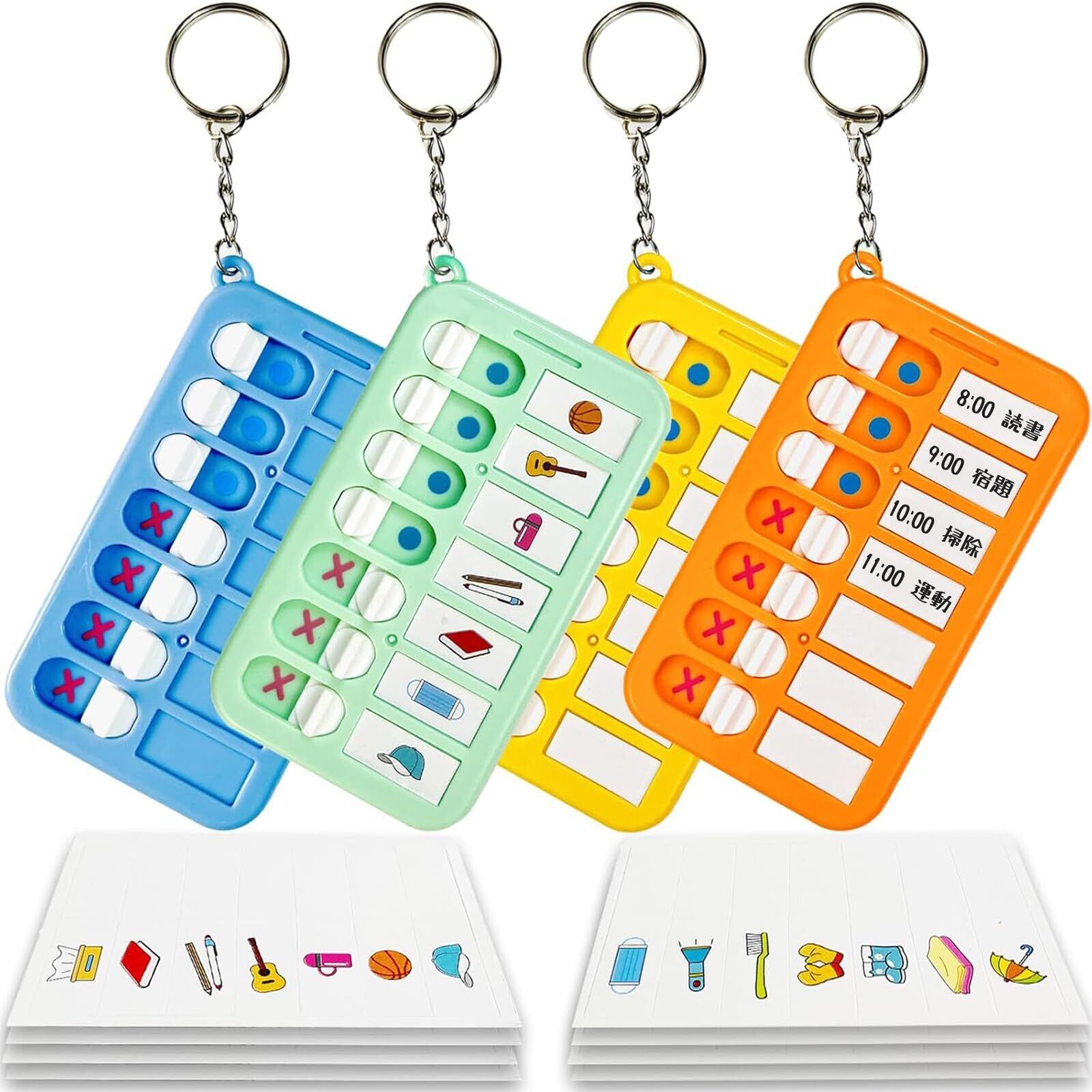忘れ物チェッカー 4個入り チェックリスト 持ち物チェッカー やることリスト 子供 習慣 確認 片付け 持ち物 忘れ物 日常業務 高齢者介護 忘れ物防止 チェッカー 子供用