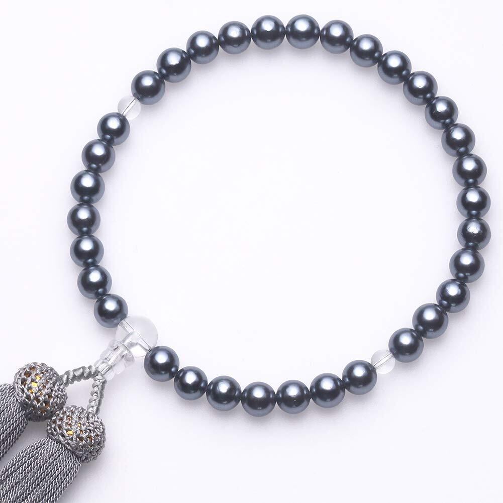 LEOBEE 貝パール 女性用数珠 マグネット式数珠袋付き 念珠 じゅず 手作り念珠 数珠ブレスレット 葬式 葬儀 墓参り 法事 念誦 全ての宗派で使用頂け (黒貝パール)