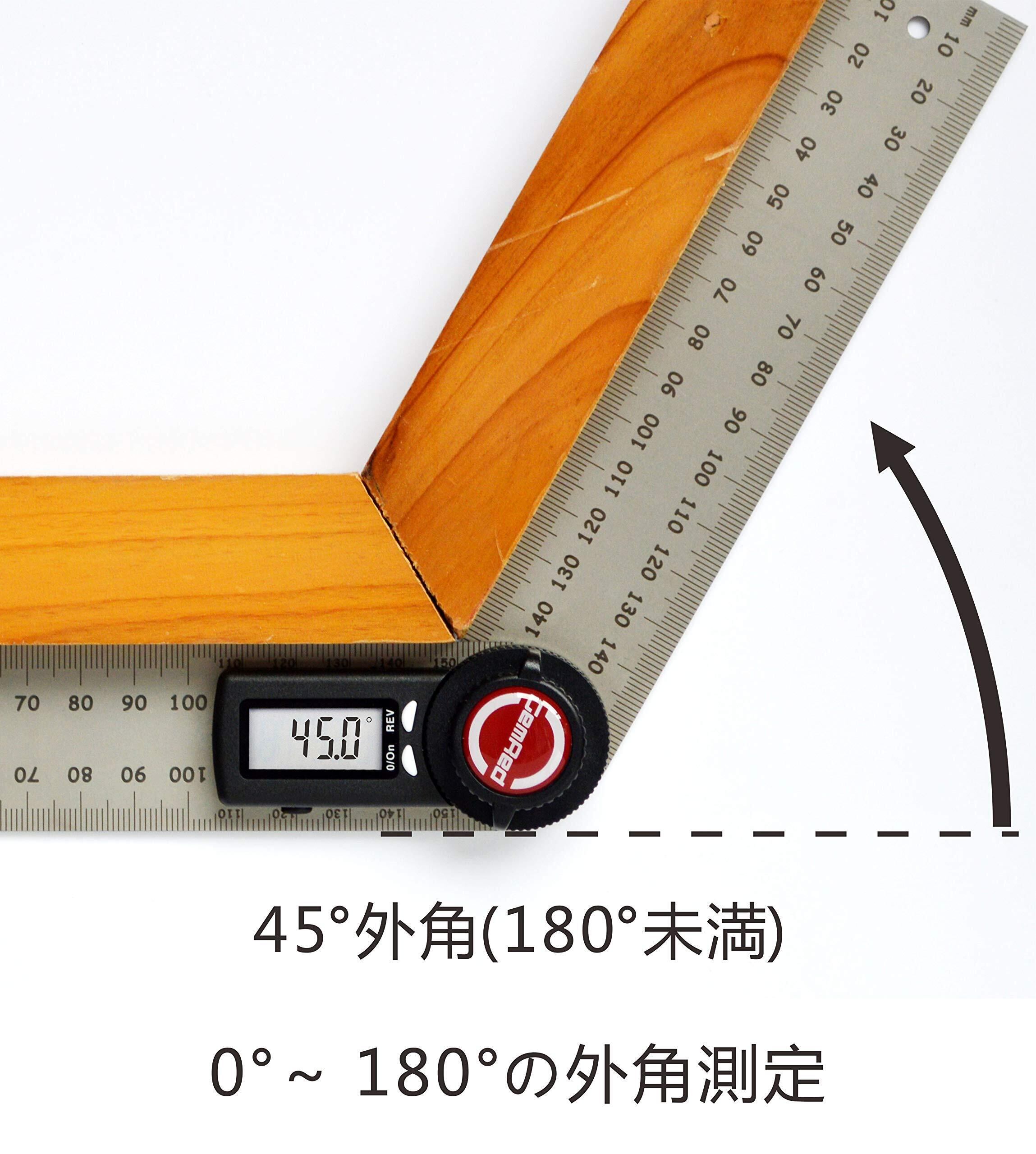GemRed デジタル角度計 分度器 測定器速読デジタルプロトラクター 角度ゲージ 角度ルーラー 長さ測定 アルミニウム 角度定規 360度自由調整 20cm (銀, 150mm(リバース))