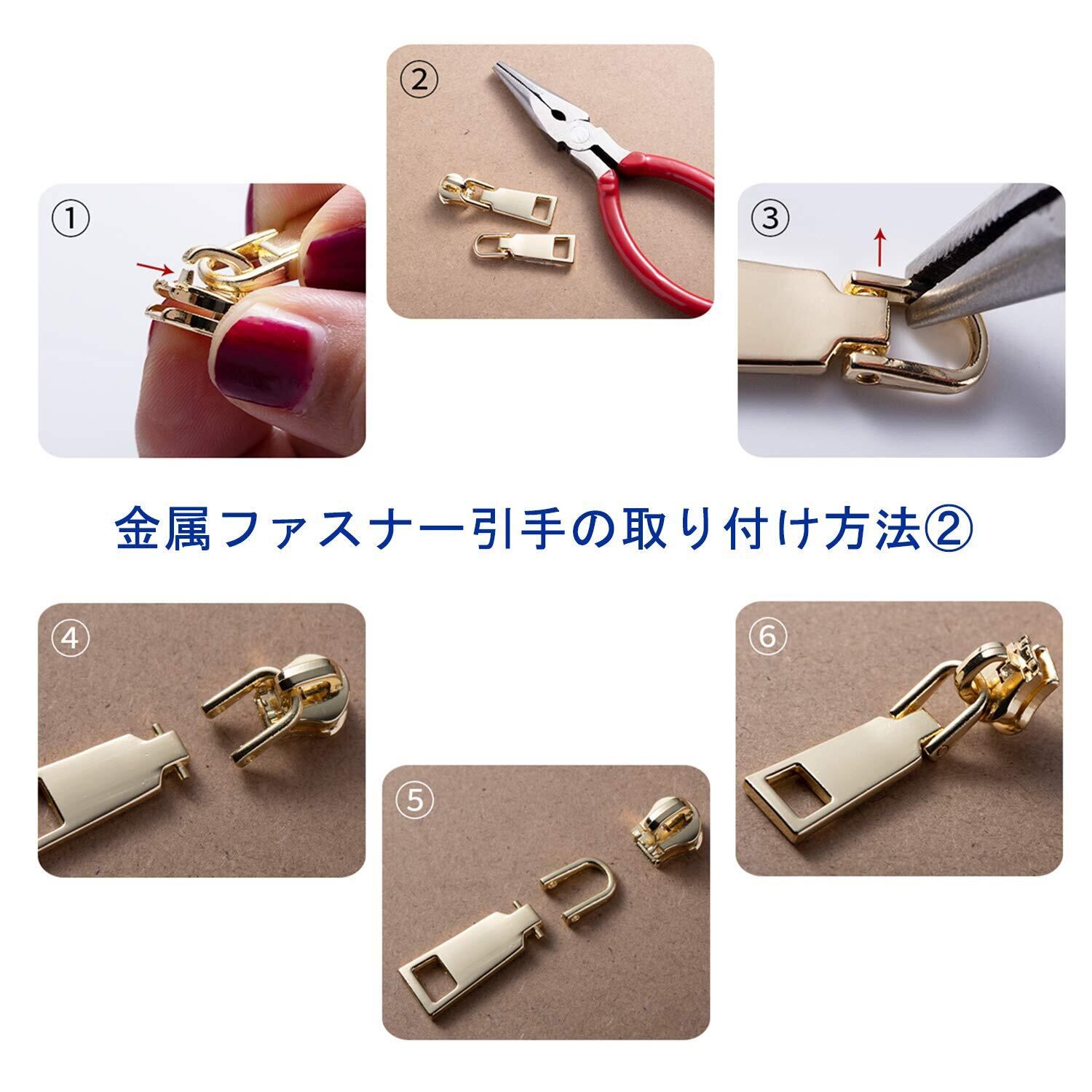 【簡単便利】取り外し可能なので、ペンチなどで引き手のリングをゆっくりと広げると簡単に外せます。ご使用上によって、お洒落なファスナー 引き手が自由に交換できる