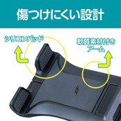 【シリコンパッド+軟質素材付きアーム】 スマートフォン/タブレットを傷つけにくい軟質素材でホールドします。