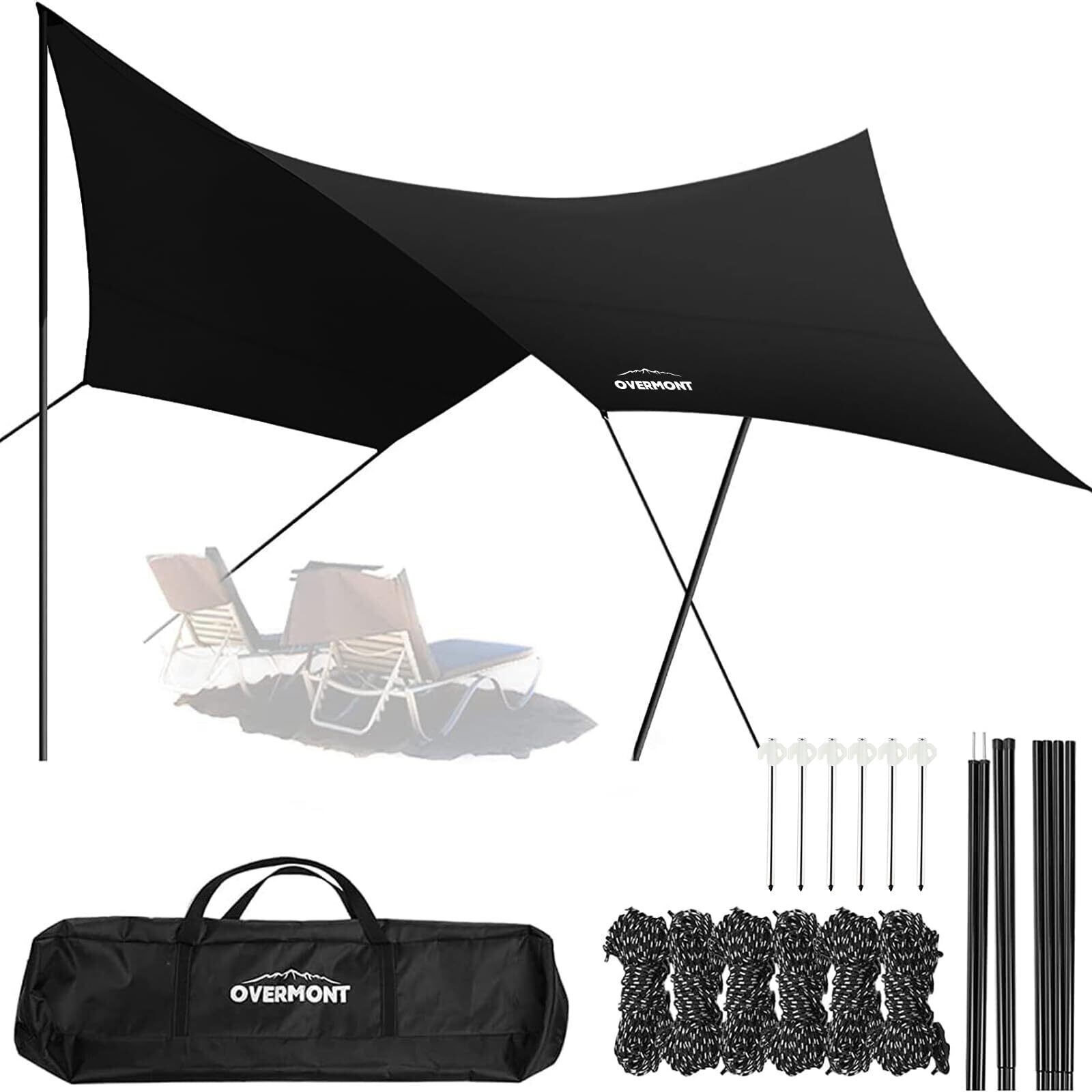 Overmont 防水タープ 5mx5m ヘキサタープ ポール付き いつかのタープ 3000mm耐水圧 大型 難燃 焚き火可 テントとの取り組み可能 UV加工済 遮熱 遮光 キャンプ用品 アウトドア 収納袋付き