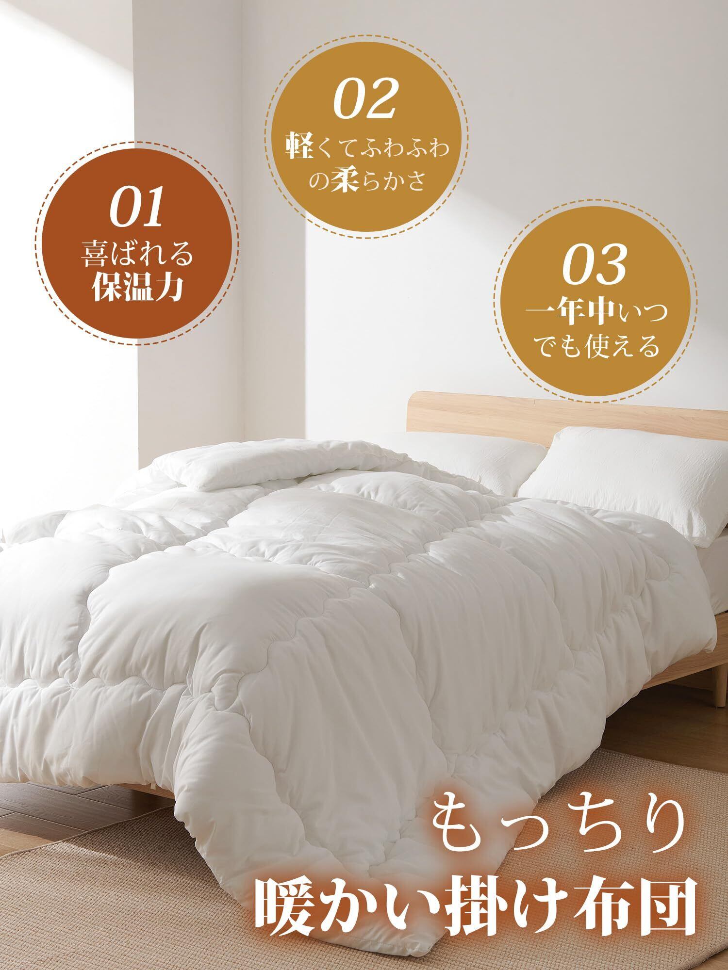 【1枚でオールシーズン快適に】軽量でありながら、保温性に優れた素材を使用しているため、寒い冬の夜でも暖かく、春や秋には心地よい寝心地を提供します。