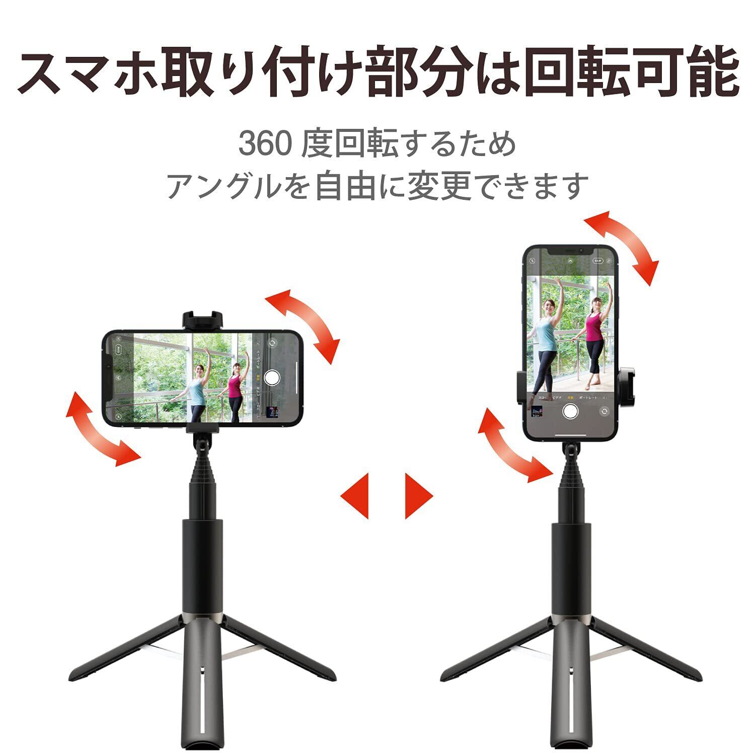 エレコム 三脚 自撮り棒 【 スマホ用 】 2way ホルダー一体型 アクセサリーシュー付 ブラック P-STSRS02ITABK