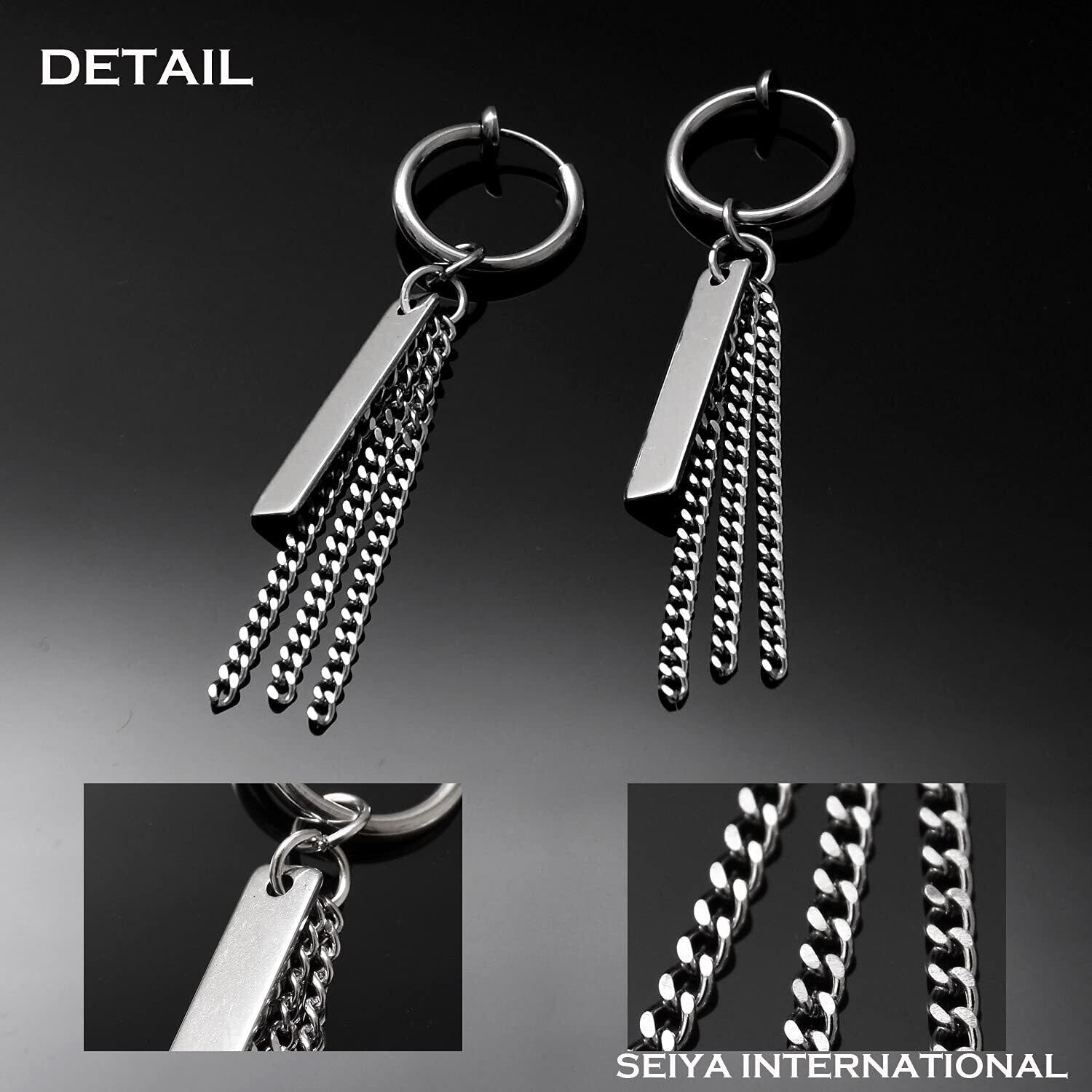 【 デザイン 】定番のフープタイプにチェーンやスティックが付いた揺れるフェイクピアス。チャーム(パーツ)は着けたり外したりできるのでお好みのスタイルで着用可能です。 韓国 K-POPアーティスト、韓国アイドル、日本のダンサー、HIPHOP、B系など多数着用しているデザインです。通常のフープイヤリングに飽きてしまった方にとてもオススメなアクセサリーです。ピアス穴不要なので簡単に着用でき、男性、女性、お友達や同僚、恋人へのクリスマス、バレンタインデー、誕生日などの記念日のプレゼントとしてもオススメです。