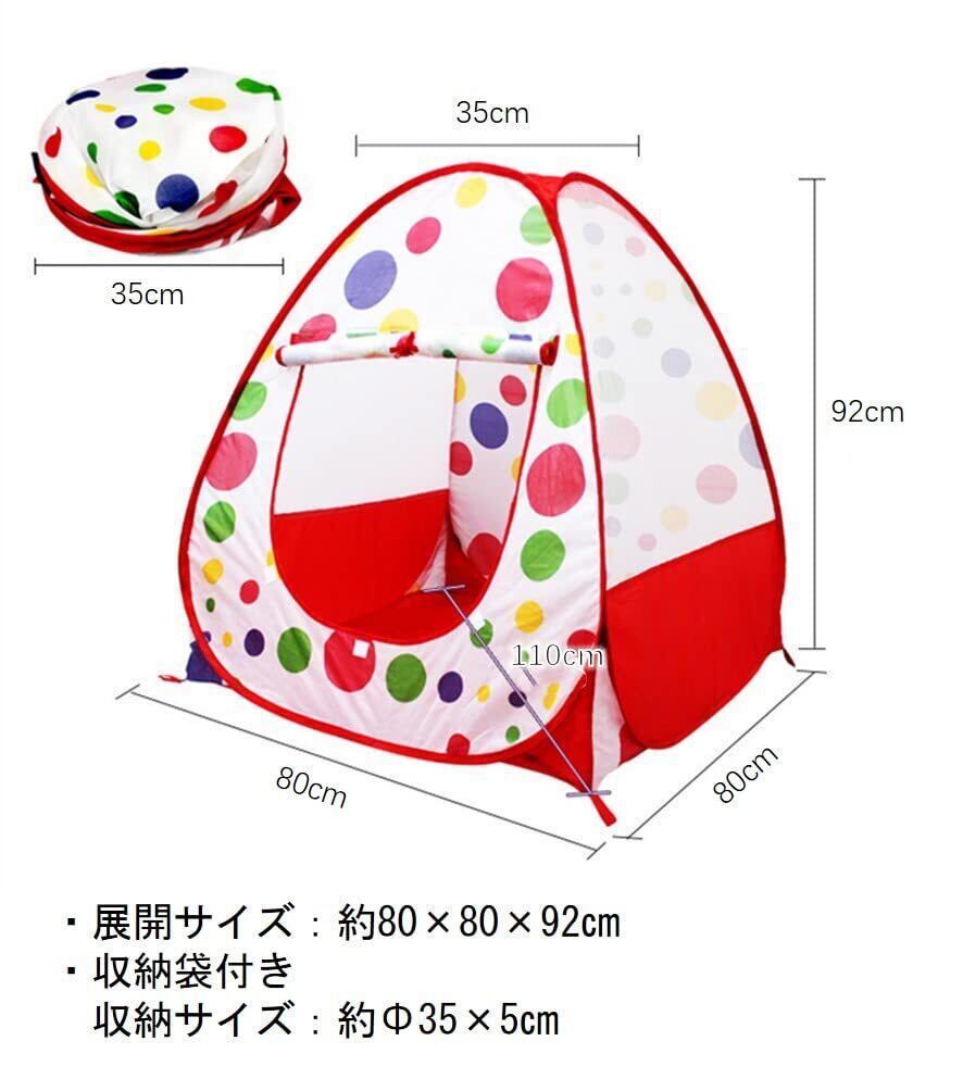 Ansimple 子供用テント 子供用ボールハウス 可愛い テント 秘密基地 屋内遊具 専用収納袋付き キッズ 用 折りたたみ ワンタッチ 軽量 通気性 室内 屋外 おもちゃ プレゼント (カラフル丸の柄)