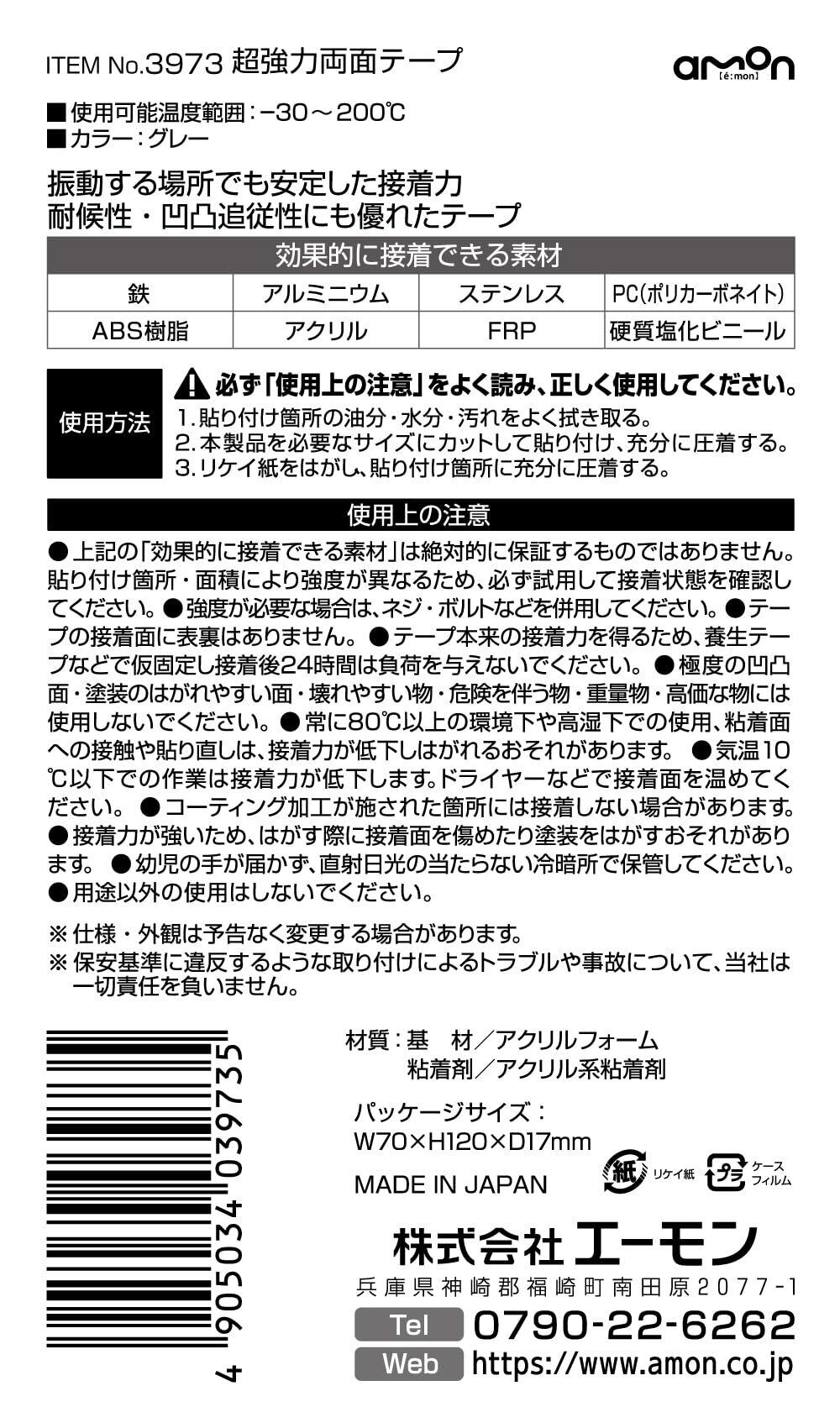 エーモン(amon) 超強力両面テープ (ミラーカバー・エアロアンテナなどに) 車外用 グレー 幅10mm×長さ2m×厚さ1.2mm 3973