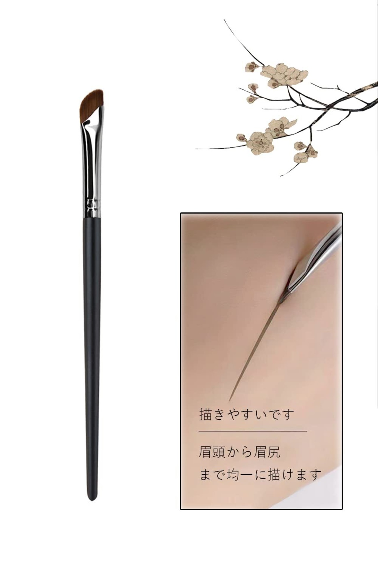 【特別デザイン】斜めにカットされた筆先となっており、縦のラインを使っての極細ラインはもちろんのこと、横に寝かせるように使ってインパクトのあるキャットラインも描きやすいです。眉頭から眉尻まで均一に描けます、一筆でスムーズにラインを描きます!