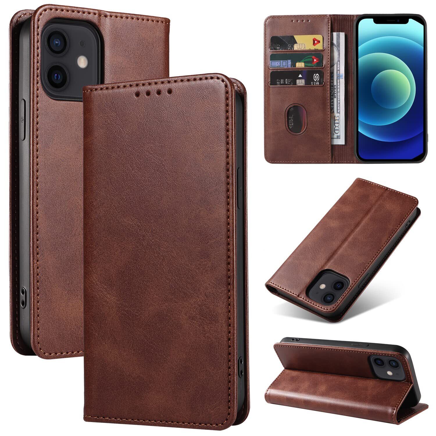 iPhone12 ケース iPhone 12 PRO ケース イフォン12/12 PRO ケース スマホケース 手帳型 携帯カバー レザー 耐衝撃 軽量 着脱しやすい 放熱性 マグネット式 カード収納 スタンド機能 iphone ケース12/12 PRO 対応 360度保護 PinLiSheng (ブラウン, iphone12/12pro)