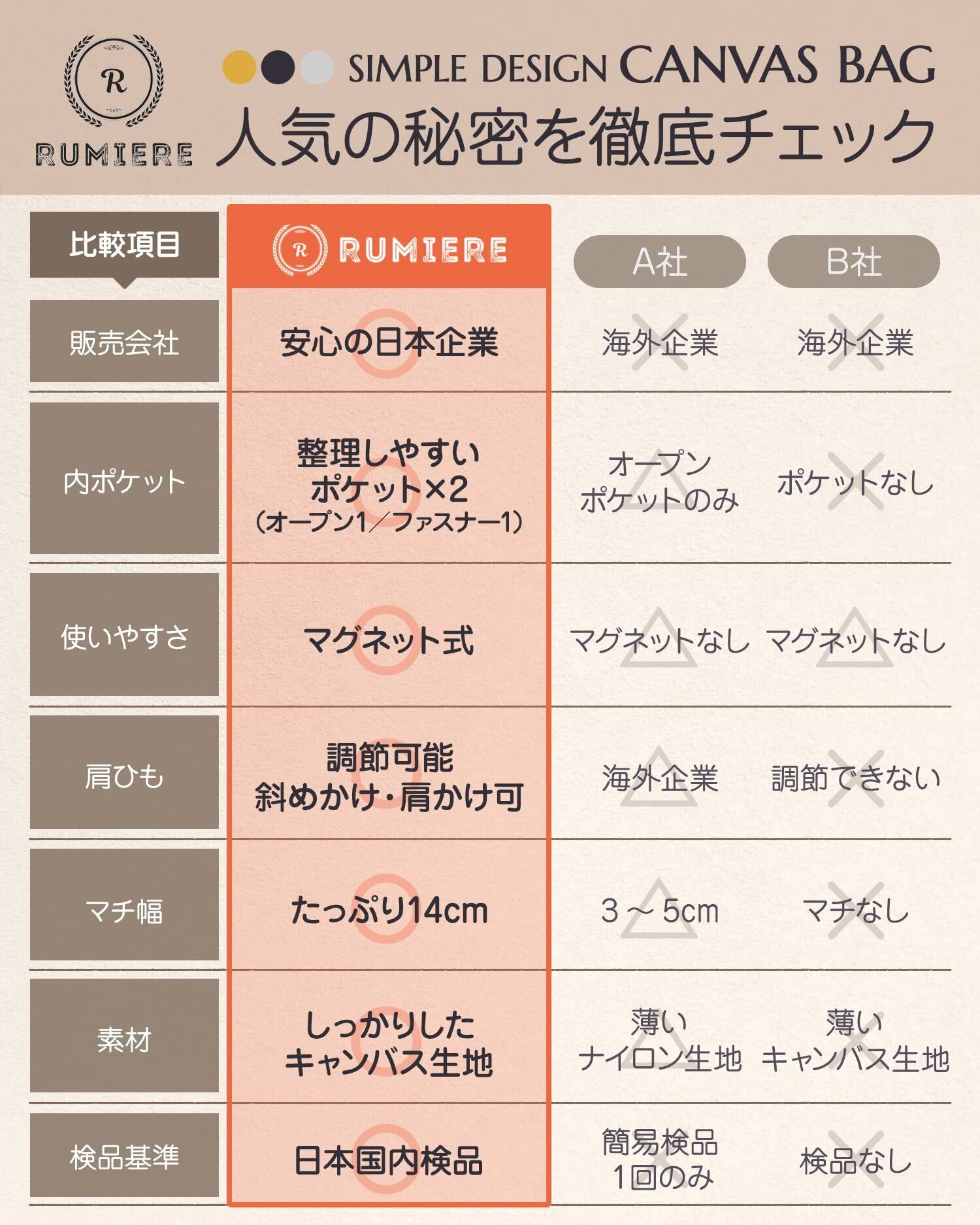 [RUMIERE] トートバッグ キャンバス ショルダーバッグ レディース メンズ 大容量 通勤 通学 斜め掛け