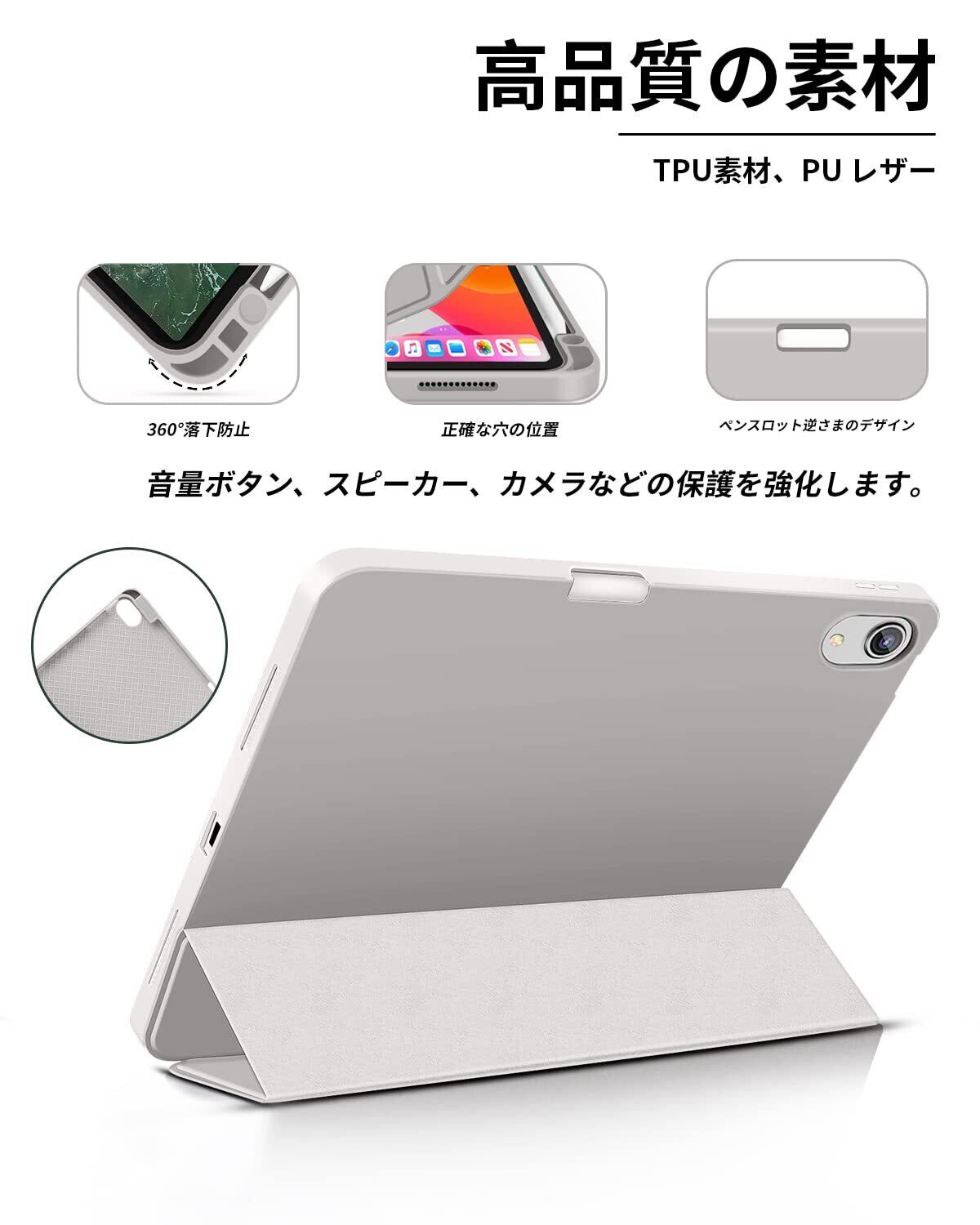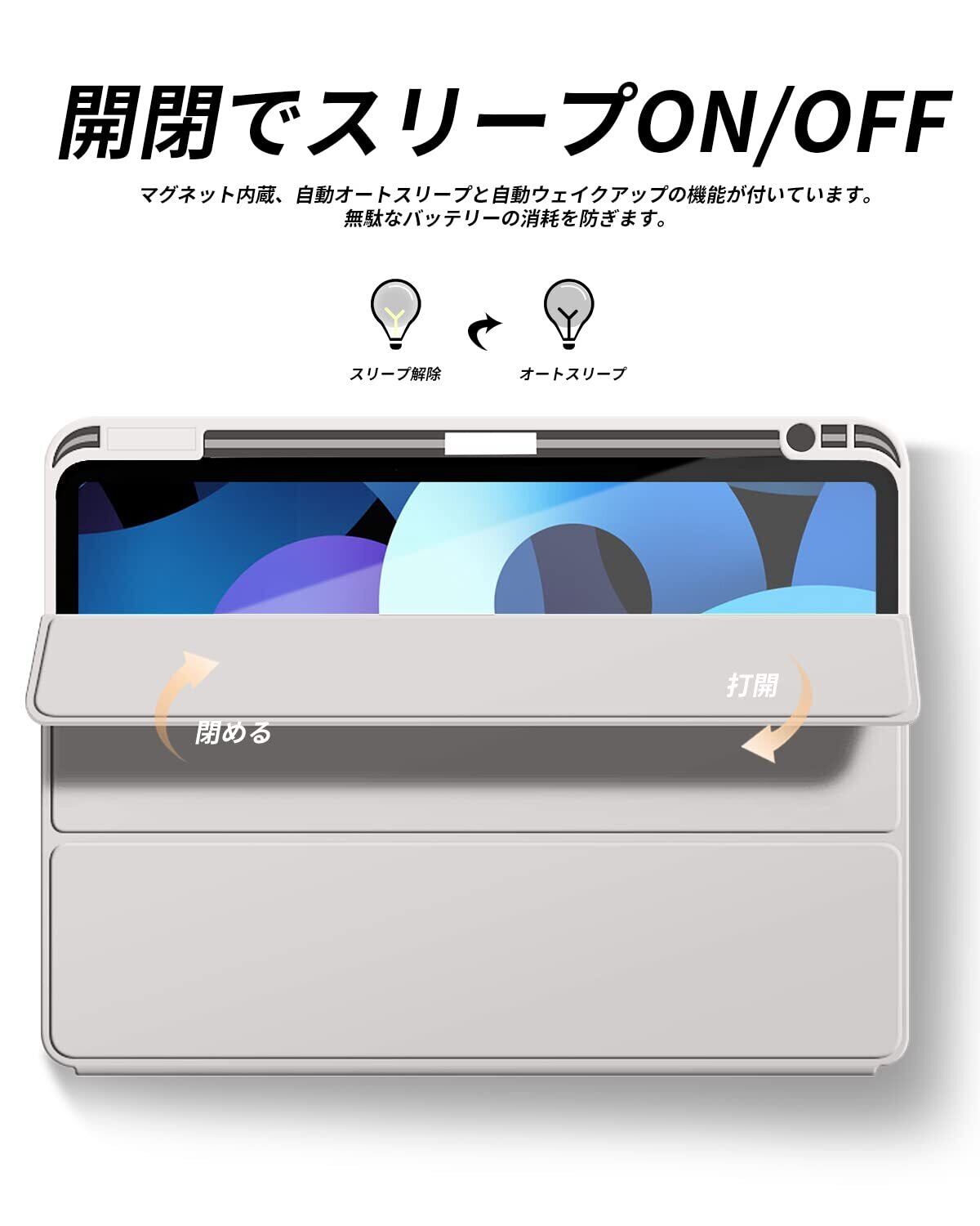 Aoub iPad Air 11 インチ ケース 2024 iPad Air 第5/4世代 カバー 2022/2020年 10.9 インチ Pencil Proペン収納 Apple Pencil2 ワイヤレス充電対応 オートスリープ/ウェイク機能対応 ソフト TPU 薄型 軽量 耐衝撃 三つ折りスタンド(ホワイトグレー)