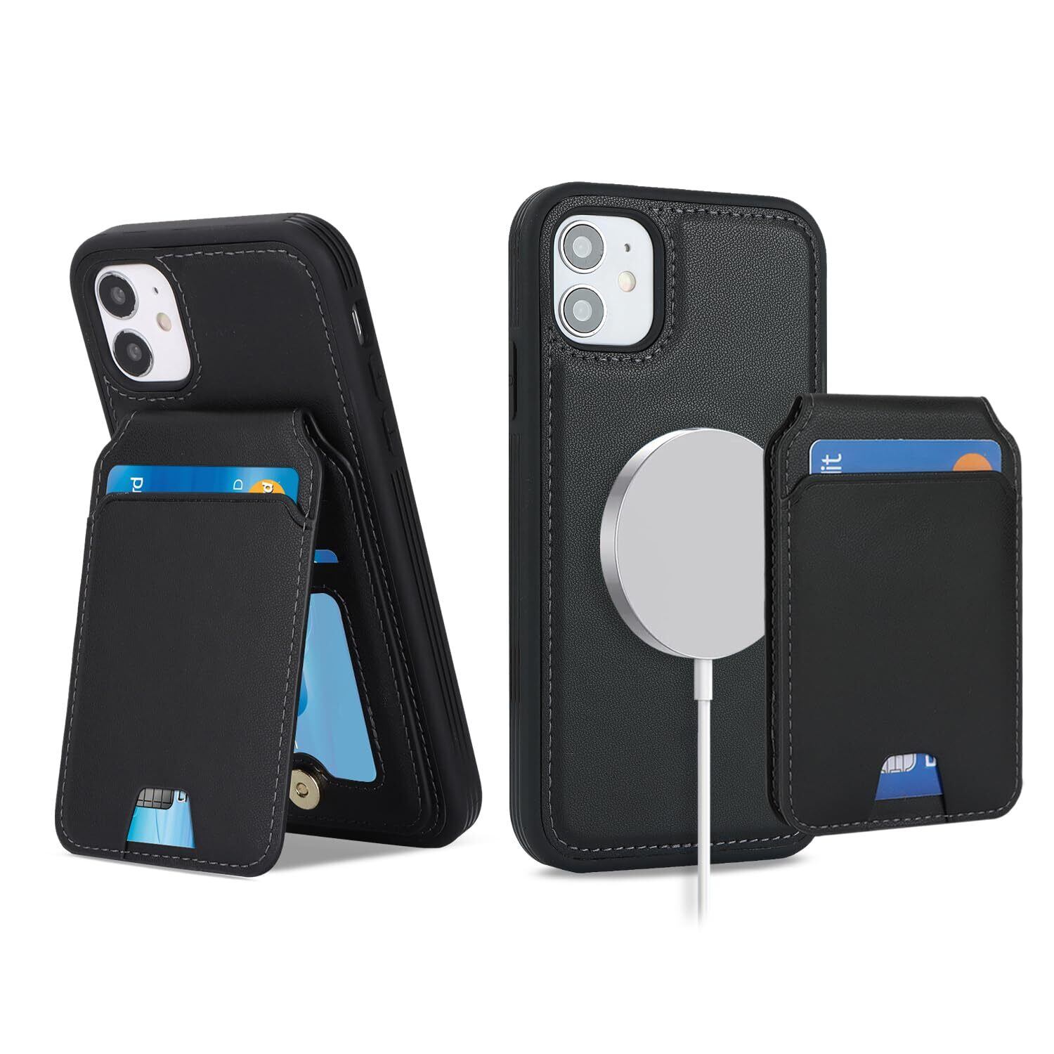 Havaya いphone12 ケース iphone12 ケース MagSafe 対応 iphone12pro ケース あいふぉん12ケース マグセーフ 分離式 耐衝撃 レザー 背面カード収納 ワイヤレス充電対応(アイフォン12 /あいふぉん12プロ/いphone12/アイホン12プロ 6.1インチ対応)-ブラック