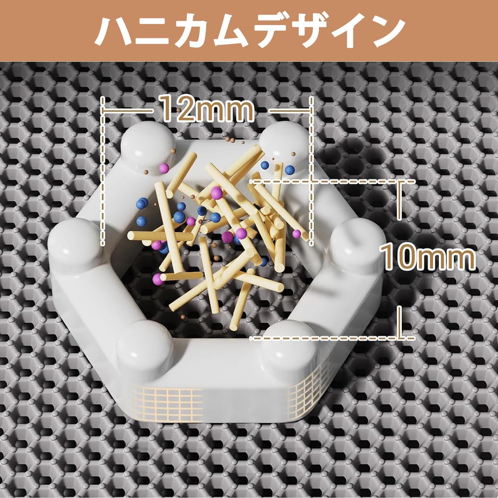 【防水や尿の浸透防止】: 二重のハニカムデザインで、散らかった猫砂はハニカムようなブラックホールを通って下の層に落ちやすくなります。底のEVA層は防水で、尿の浸透も防止でき、水と尿汚れからあなたの床とカーペットを心配する必要はありません。