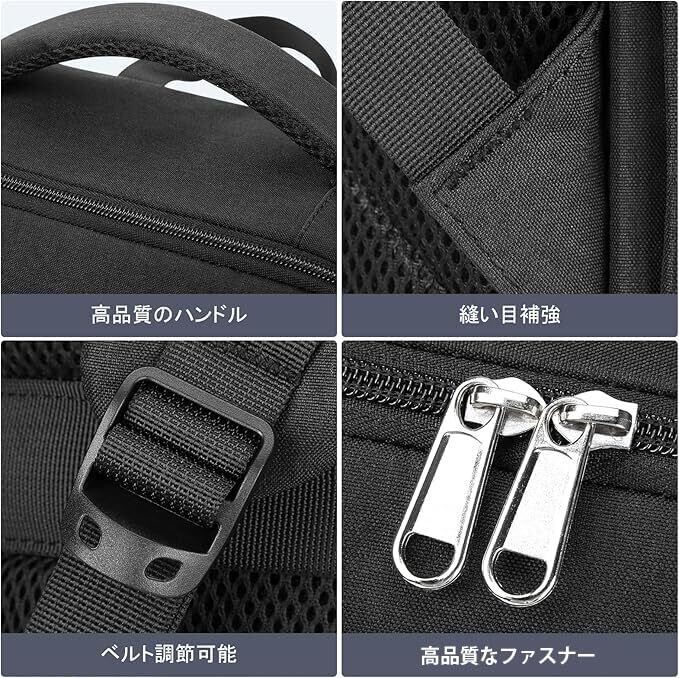 「多機能&USB充電」USB穴を備えており、リュックを背負ったままでもスマホを充電できます。リュックの上部に取っ手があり、手提げバッグとしてもお使いいただけます。高品質のダブルファスナーなので、手触りと耐久性を兼ね備えます。