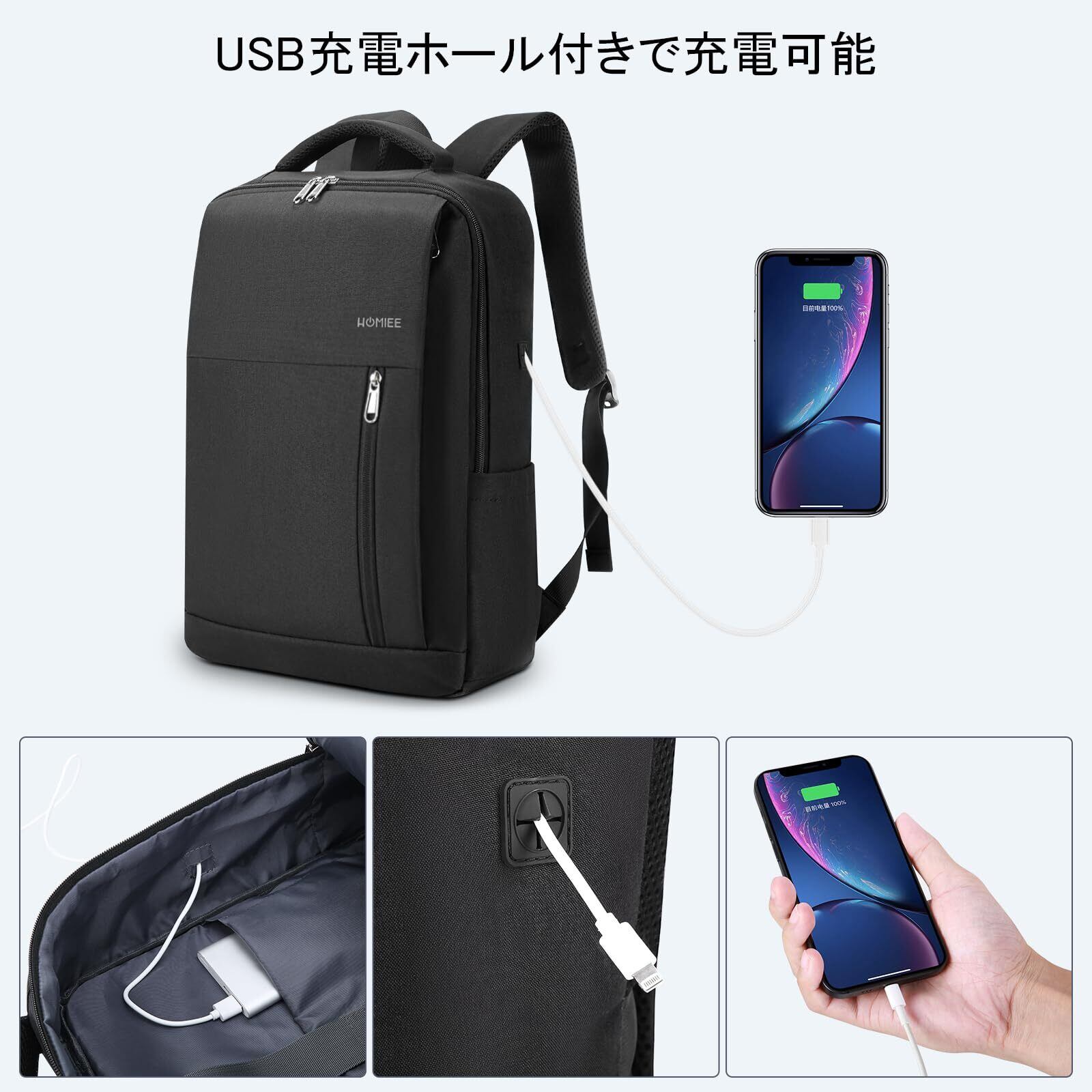 [HOMIEE] リュック ビジネスリュック メンズ 軽量 バックパック 薄型 15.6インチ 17.3インチPC 大容量 A4ファイル USB充電 2WAY 多機能 防水 リュックサック 通勤 通学 出張 旅行 カバン 男女兼用