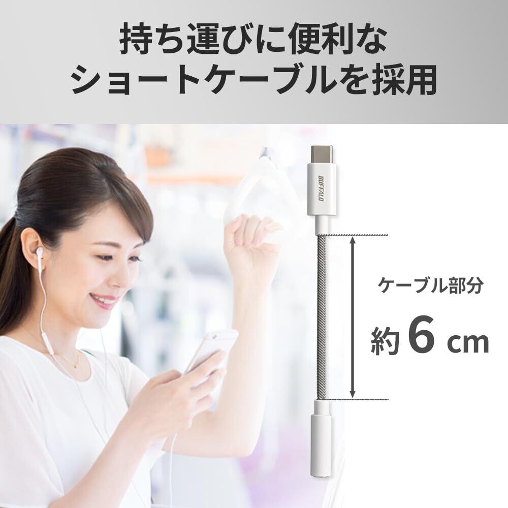 バッファロー USB Type-C 3.5mm 3極 4極 オーディオ 変換 アダプター ハイレゾ対応 DAC搭載 高耐久ケーブル 屈曲耐久試験30,000回クリア イヤホンジャック イヤホン ヘッドホン ヘッドセット マイク 音量調整 【 iPhone 16 / 16 Pro/iPad/Mac/Android スマートフォン タブレット 対応 】 ホワイト BSMPC355HRWH
