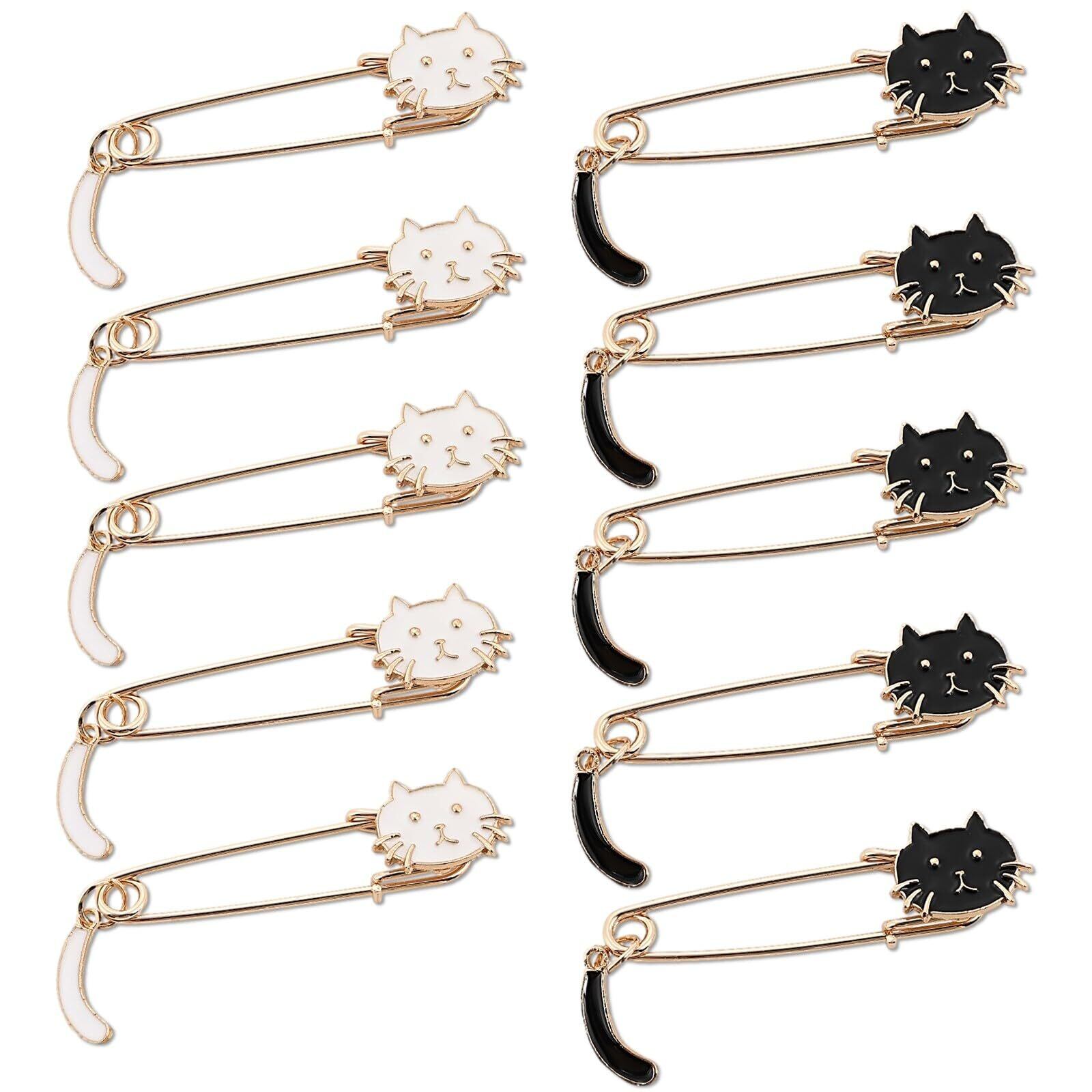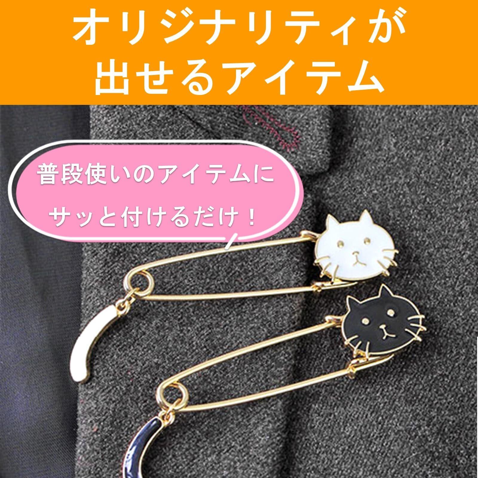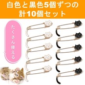 ルボナリエ 安全ピン かわいい ブローチピン ピンブローチ 猫 ネコ しっぽ アクセサリー ストール キルト ポンチョ ショール 10個 セット レディースブローチ (ホワイト ブラック)