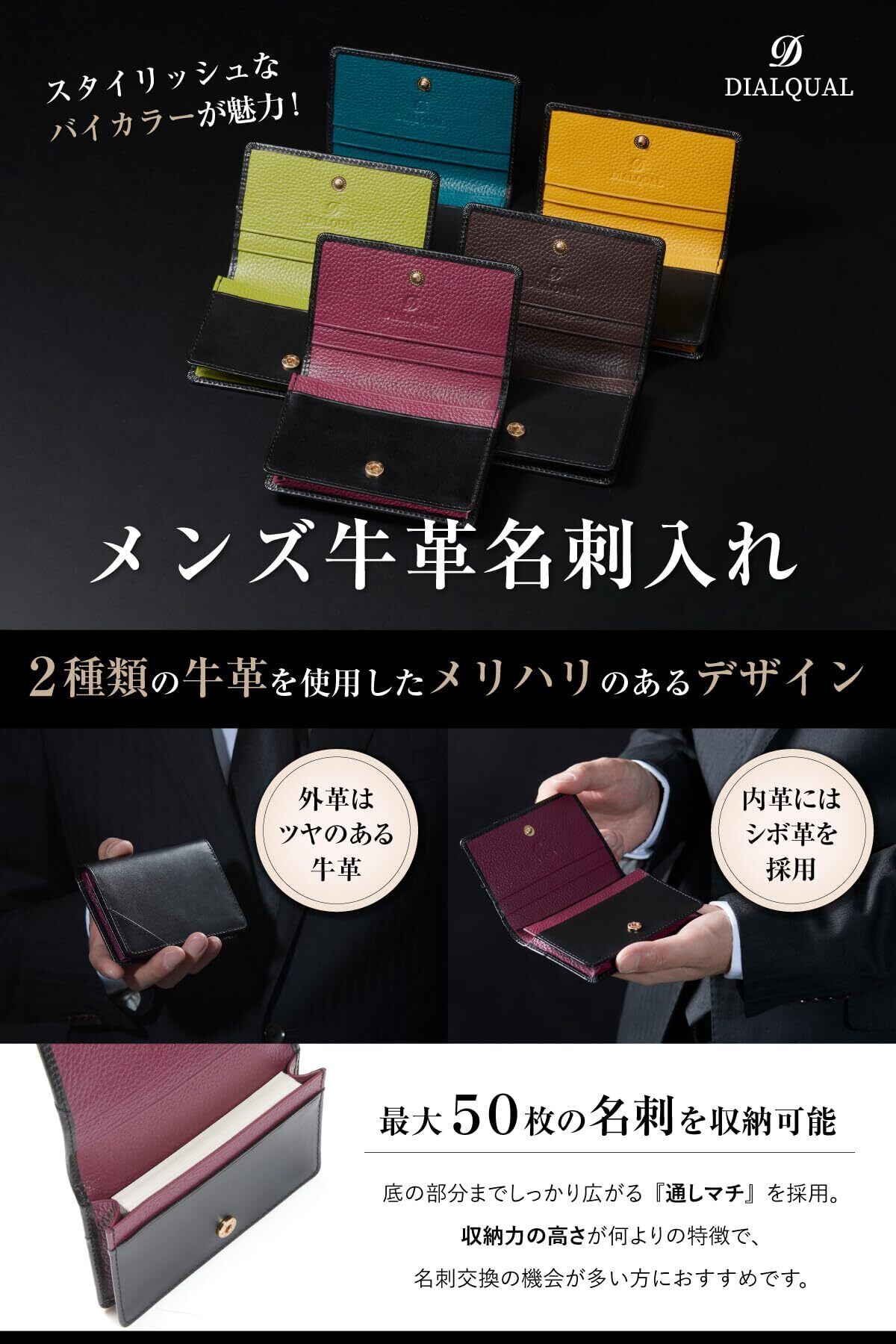 [DIALQUAL] 名刺入れ メンズ 本革 【 レザー ソムリエ監修】 大容量 50枚収納 名刺ケース (ライムグリーン)