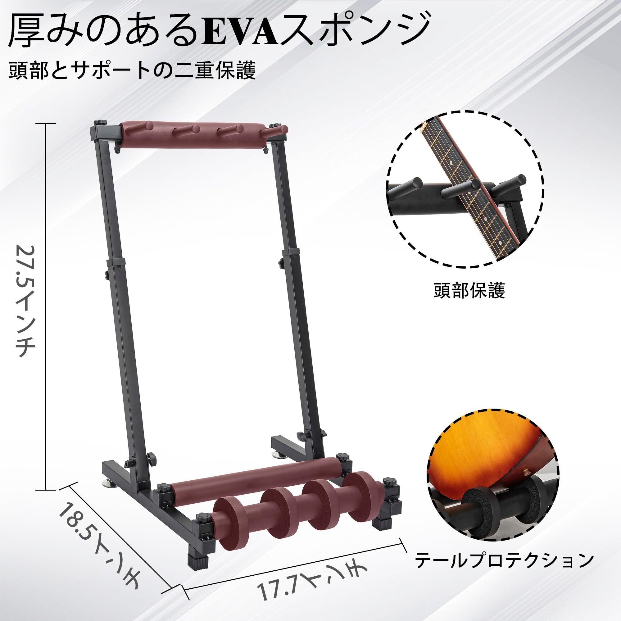 AKOZLIN マルチ ギタースタンド 3本収納 折りたたみ式 収納便利 持ち運び便利 ゴムスリーブ付き 楽器本体に傷が付 転倒防止 ポータブルギターホルダー クラシック エレキ ベースギターなどに適用(43.5cm × 43.5cm × 72cm)