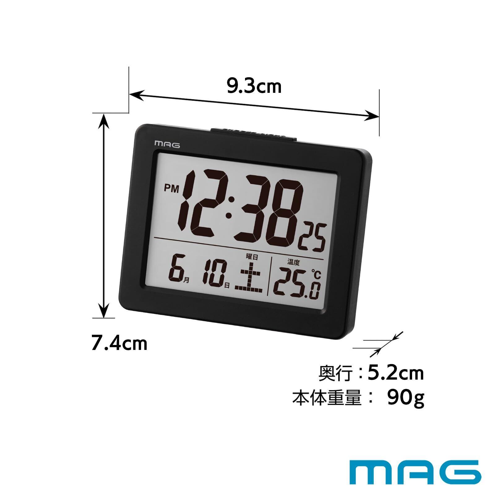 MAG(マグ) 目覚まし時計 置き時計 小型 小さい デジタル 温度計 カレンダー 電子音 アラーム スヌーズ ライト ブラック ブリム T-779A BK-Z ノア精密