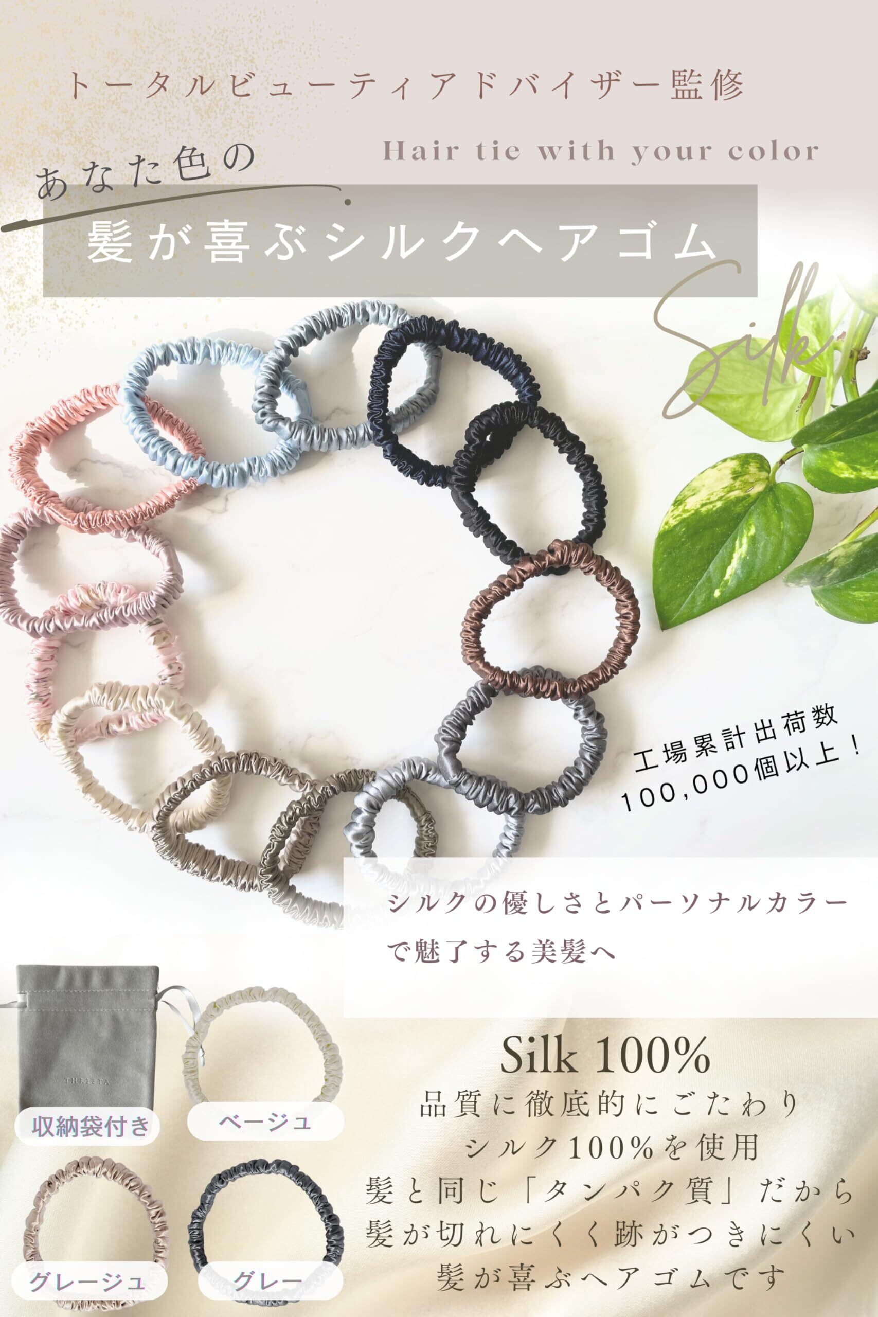 【雑誌掲載商品】 ヘアゴム シュシュ シルク 100% 髪ゴム 【ビューティアドバイザー監修】 パーソナルカラーでも選べる ヘアゴムで美髪 収納袋付き 3個セット (グレージュ)