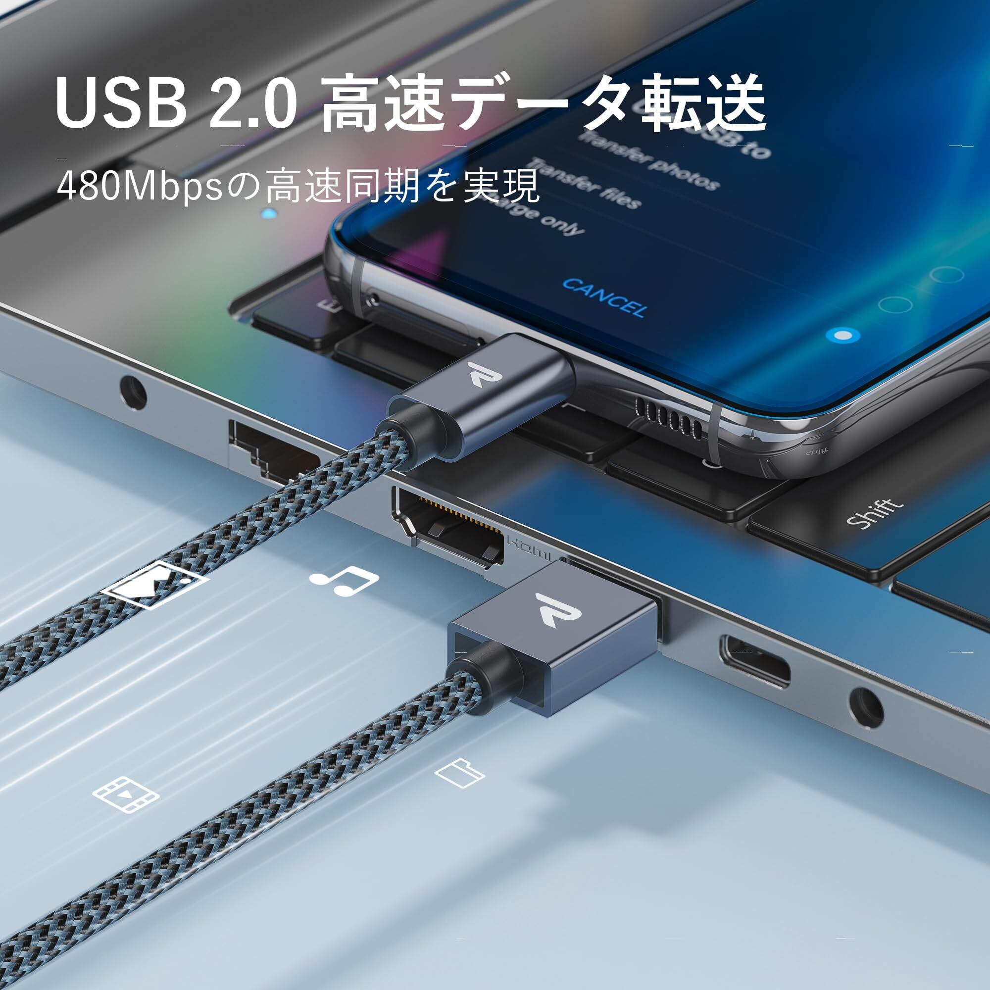 【1m+1m+2m 3本/黒】RAMPOW usb c ケーブル タイプc ケーブル 急速充電 QuickCharge3.0対応 データ転送USB2.0規格 iPhone 16 充電ケーブル/iPhone 15 充電ケーブル Sony Xperia/Samsung/Asus Zenfone/Fujitsu Arrows/PS5コントローラー タイプc多機種対応 在宅勤務支援