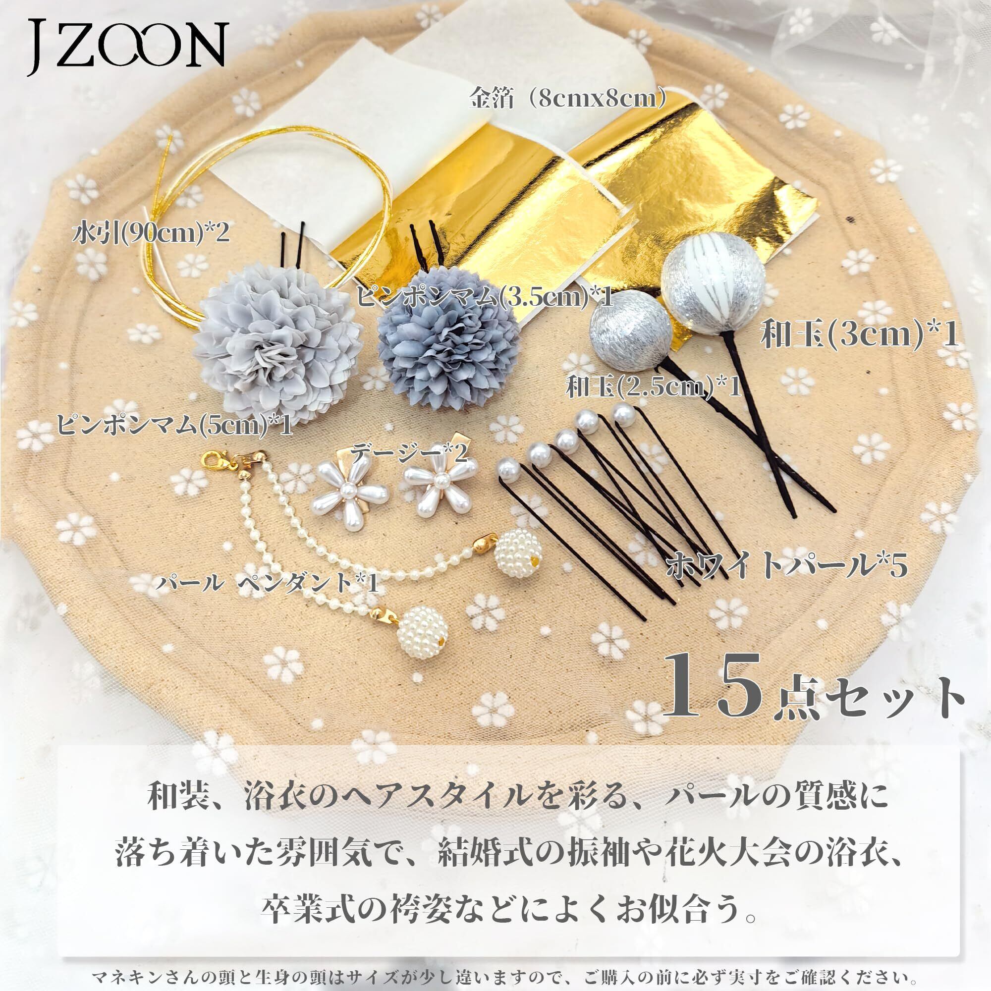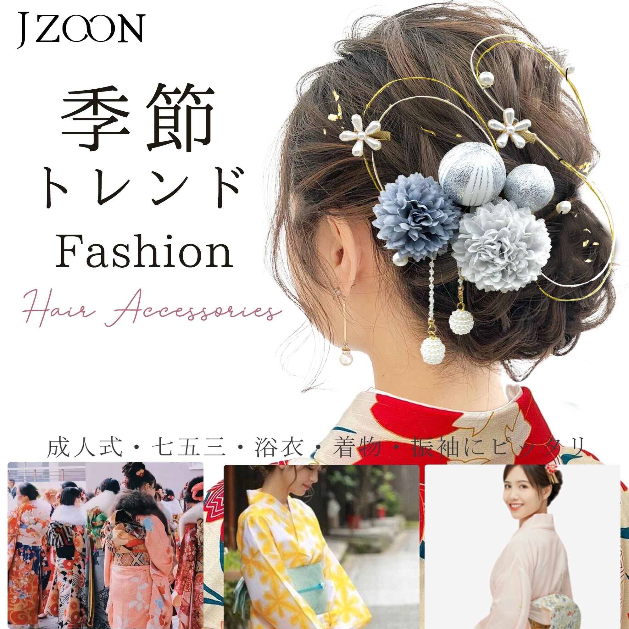 【JZOON】浴衣 髪飾り 15点セット 成人式 卒業式 振袖 和装 着物 袴 ドライフラワー 金箔 和玉 水引き パール 全9色 F1101