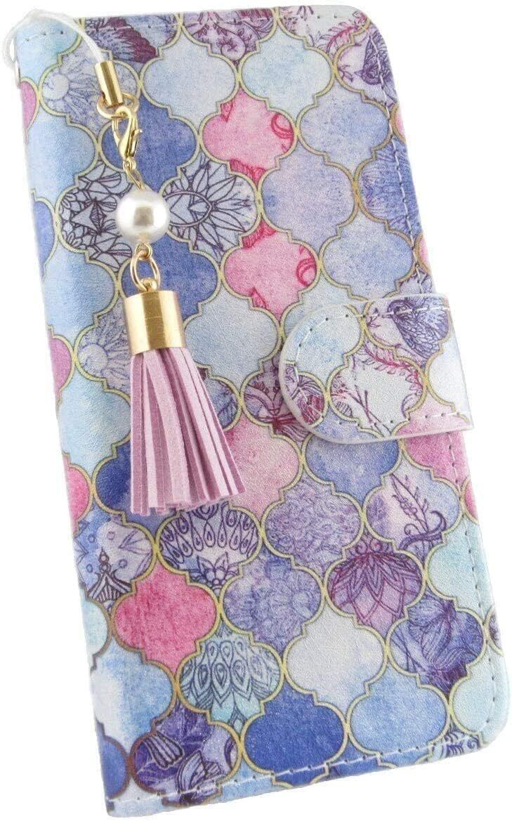BASIO active SHG09 ケース BASIO active2 au SHG12 通用 シンプルスマホ7 A 404SH シンプルスマホ6 A201SH ケース 手帳型 チャーム な タッセル ストラップ付き かわいい TPU スタンド 機能 スマホケース カバー (BASIO active/BASIO active2/シンプルスマホ6,青鳥)