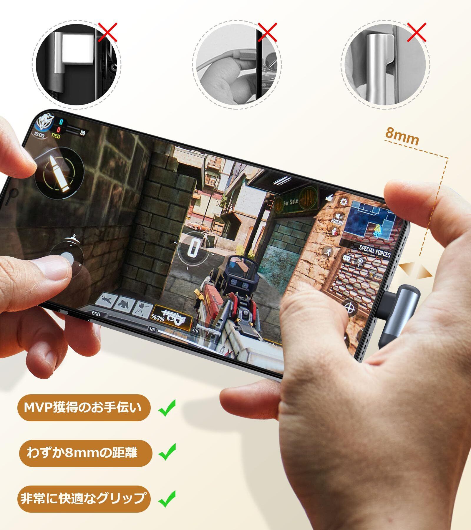 【L型設計】:L字のType cケーブル設計、頻繁にプラグを差し込んでも断線できません。コンセントやパソコンに繋いでも、ケーブルを無理やりに曲げる必要がなしで、スマホを横向きにして充電したり、ゲームしたり、スタンドやカバンに置いても便利になります。