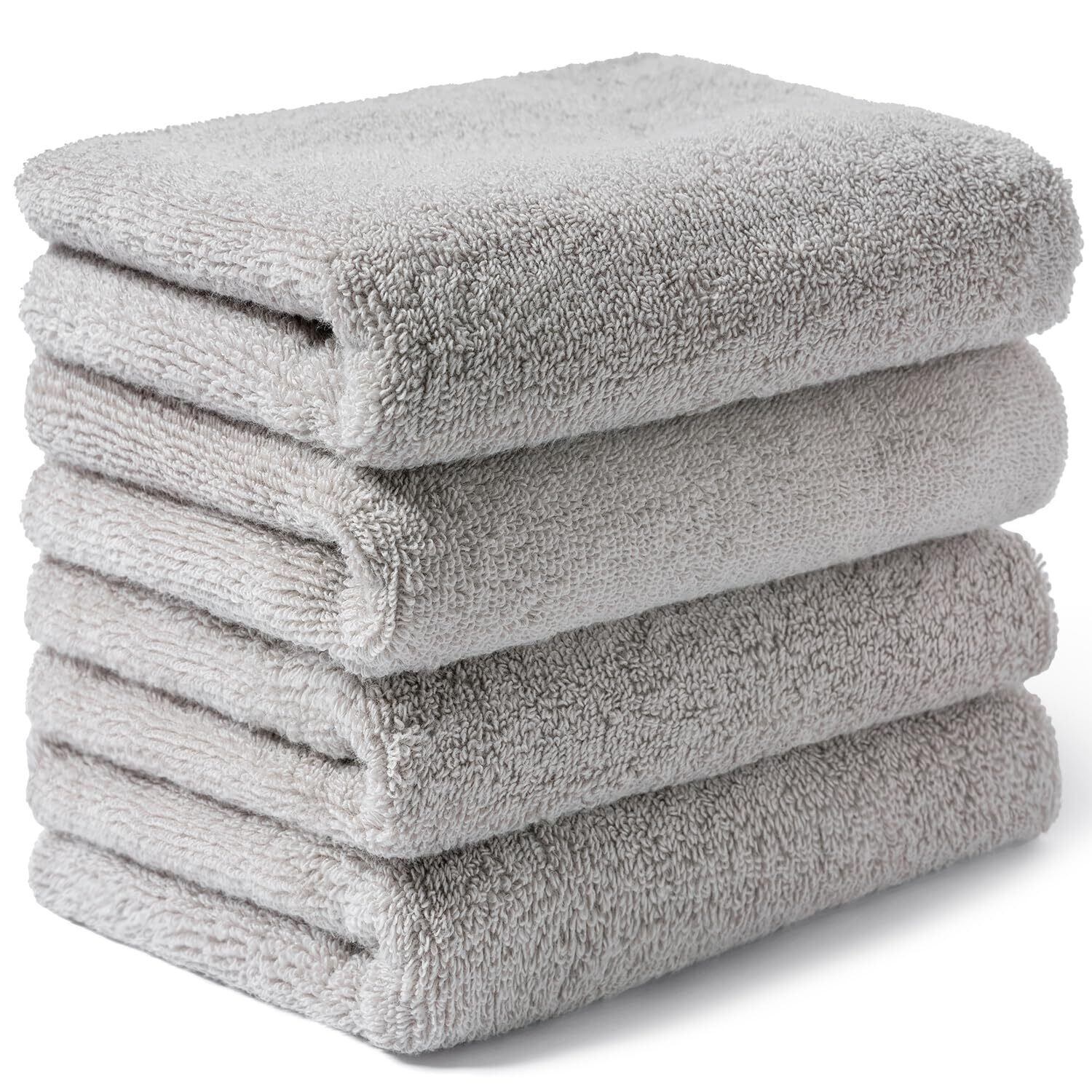 AIFY フェイスタオル 厚手 ホテル仕様 4枚セット 敏感肌 肌荒れ 肌触りが良い ふわふわ 髪に優しい 軽量速乾 瞬間吸水 抗菌防臭 毛落ちしにくい 耐久性 赤ちゃん エステ サロン 綿 無地 ギフト 34×80cm ライトグレー