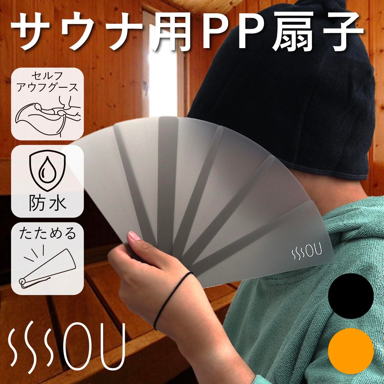 SOU by RAKUSE (ソウバイラクセ) サウナ用 セルフロウリュ 扇子 (サウナ用/プラスチック製) おしゃれ 透けて見える 扇 うちわ (耐熱 120℃ / 防水/紐付き) バーベキュー