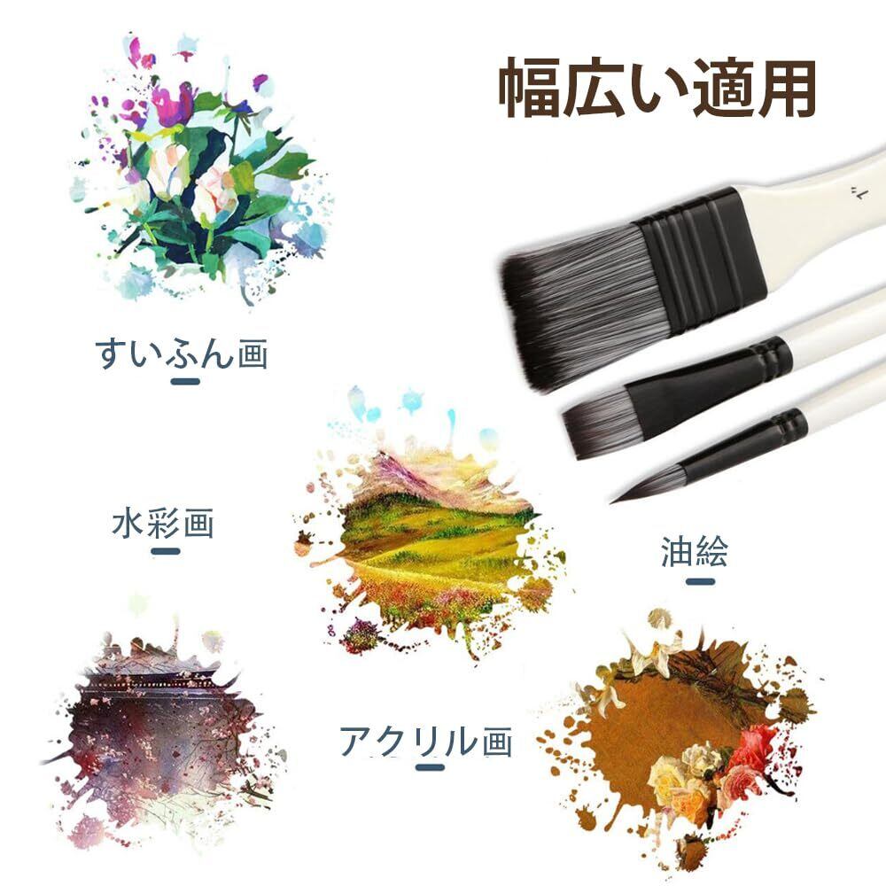 CHENLONB 絵筆 画材筆 ナイロン絵筆 平型 丸型 扇型 水彩 アクリル画 油絵 多用途 ペイントブラシ 10本セット 収納ボックス付き (ホワイト)