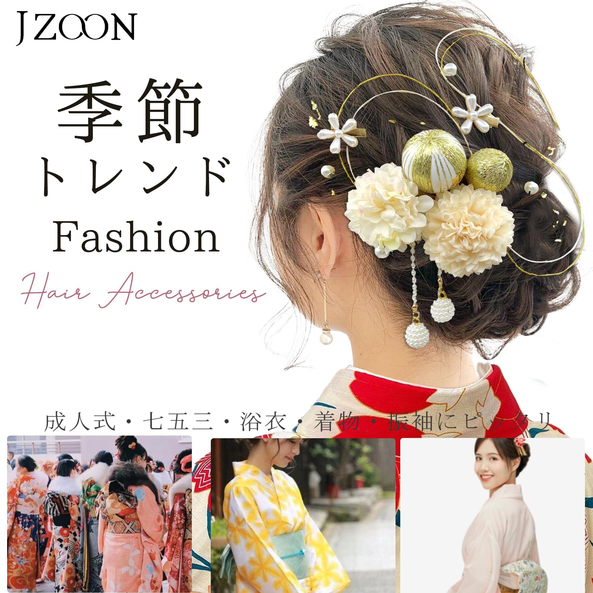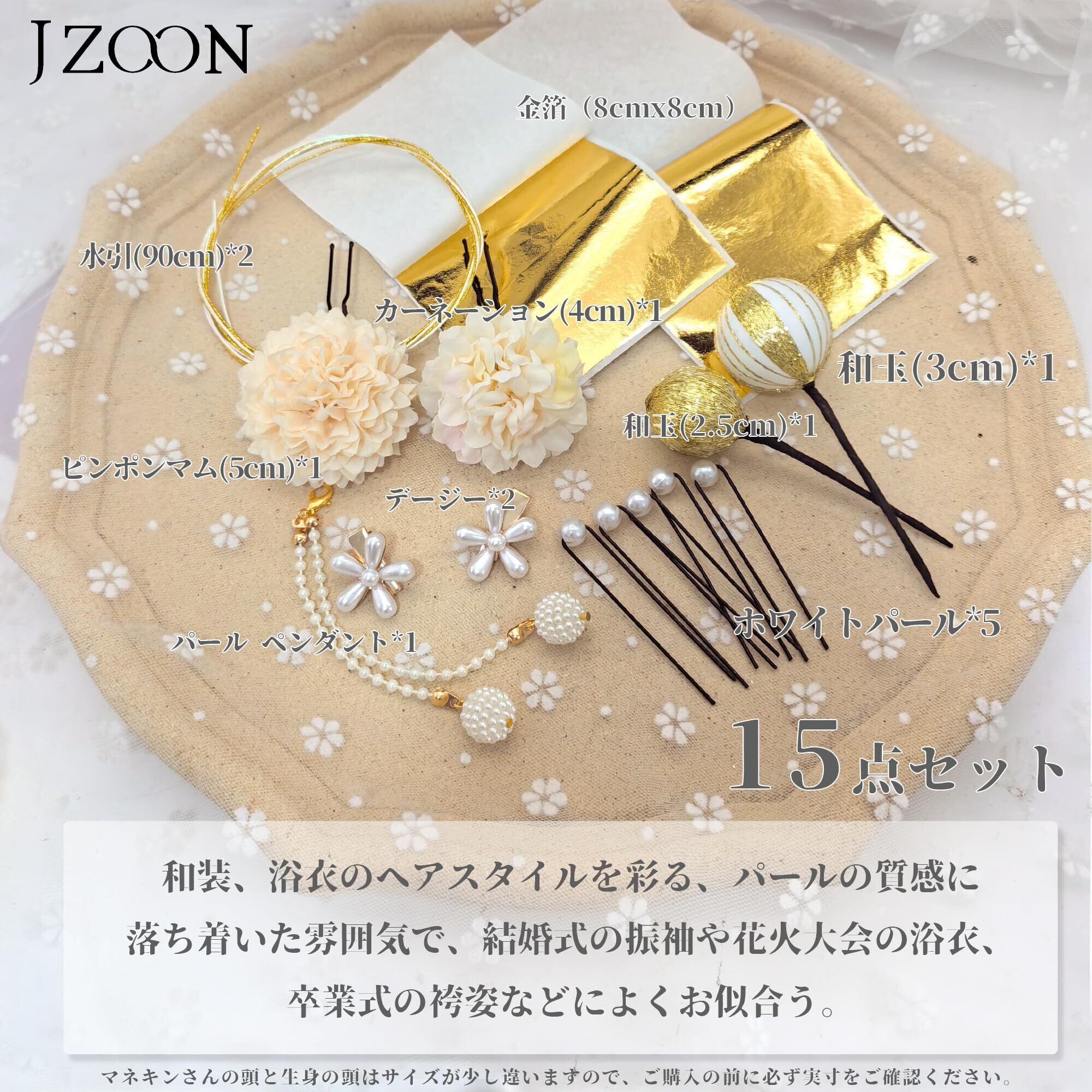 【JZOON】浴衣 髪飾り 15点セット 成人式 卒業式 振袖 和装 着物 袴 ドライフラワー 金箔 和玉 水引き パール 全9色 F1101