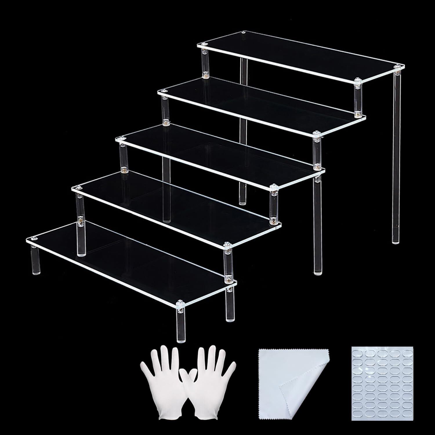 KIMEYA 展示台 アクリル ディスプレイ フィギュアスタンド コレクションケース ディスプレイスタンド アクリルステージ ひな壇 収納棚 フィギュアケース マニキュア アクセサリー 人形 化粧品 陳列台 組み立て式 透明 (5段 長さ30cm)