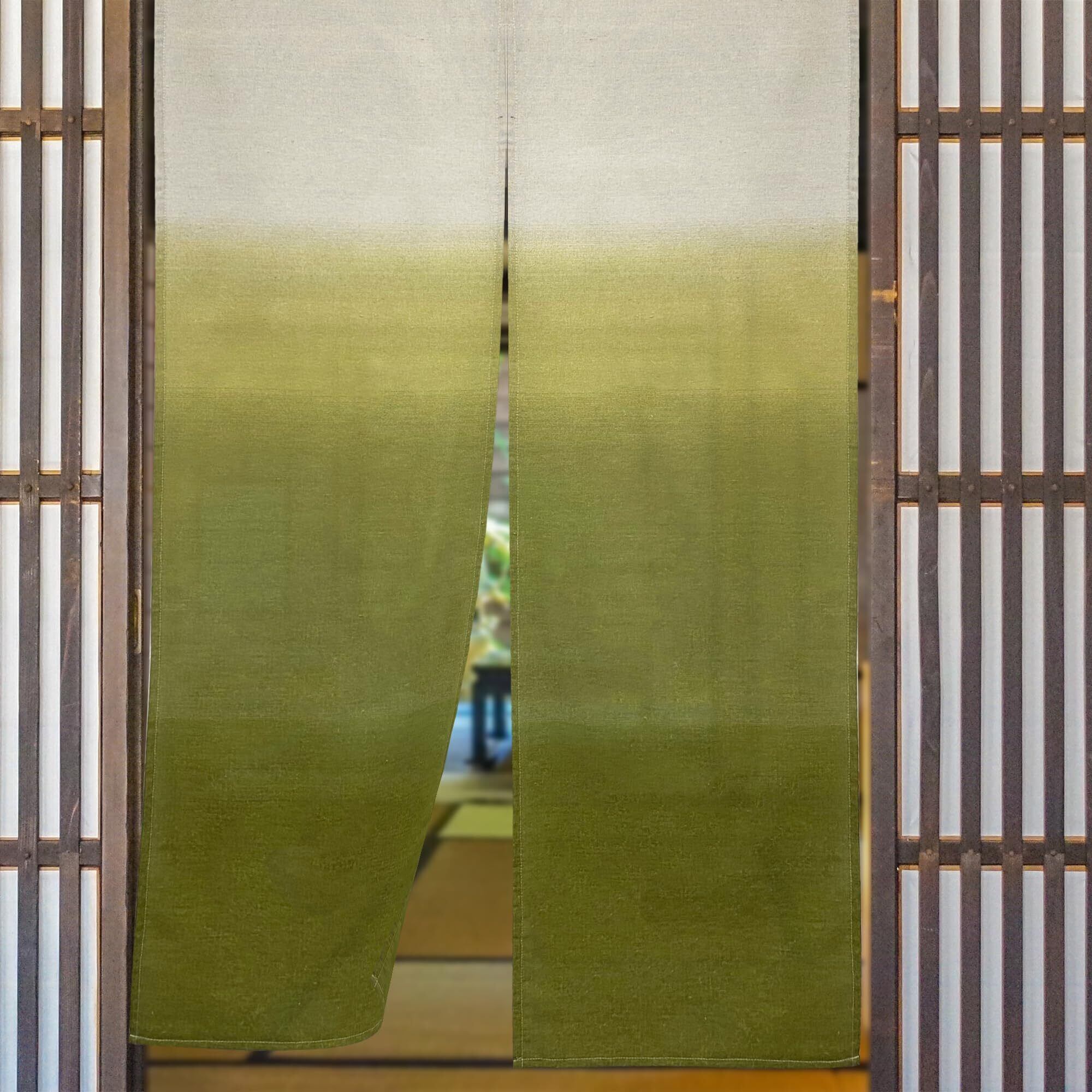 のれん 暖簾 おしゃれ カーテン 間仕切り 仕切りカーテン 目隠し 和風 和柄 和モダン 和風モダン 和風暖簾 日本 無地 muji シンプル グラデーション ぼかし染め風 段ぼかし 麻風 巾85cm 丈150cm (鶯色)