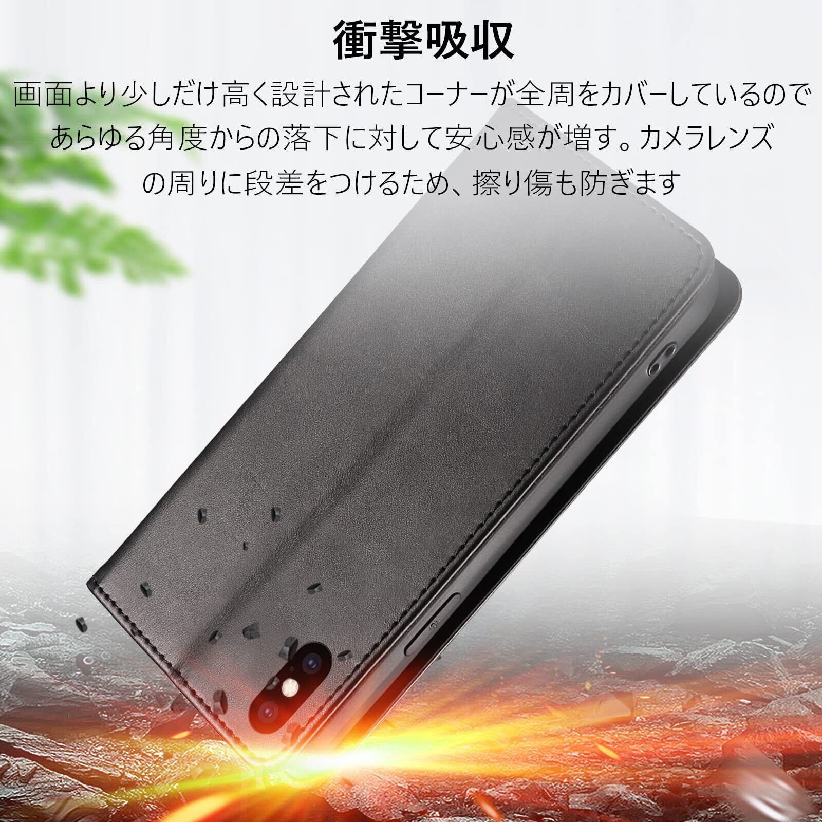 【多重保護】iphone x 手帳型ケースの四隅にラウンド処理がされており、衝撃吸収機能あり。ンナーケースはソフトなTPU素材で、全面保護を与える同時に着脱しやすいです。iphone xケース手帳型に使われているマグネット式の設計により、スマートフォンをしっかり固定できます、開閉簡単。しっかりの多重保護でお携帯を守り抜きます。