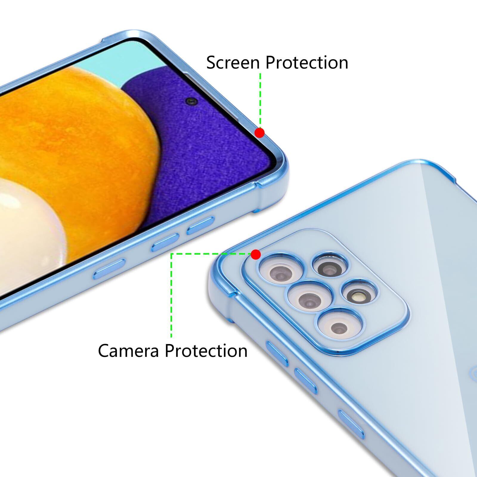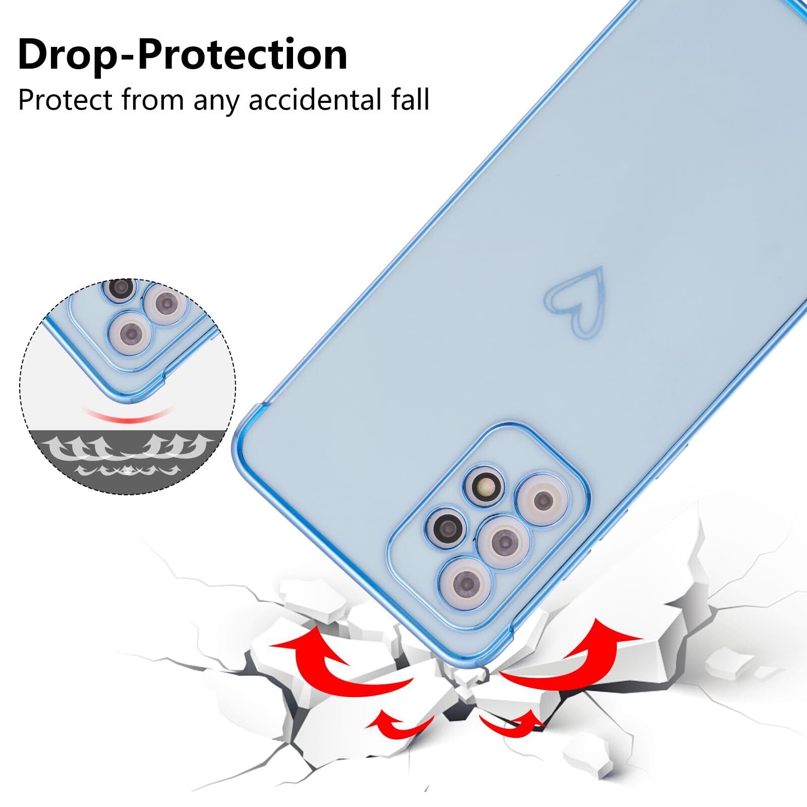ZTOFERA Samsung Galaxy A53 5G 用 ハートケース 柔軟な TPU シリコン メッキ加工 ソフト 軽量 耐衝撃 おしゃれ 韓国 可愛い サムスンギャラクシー A53 ケース 携帯カバー 女性 心パターン スマホケース ワイヤレス充電対応 (シエラブルー)