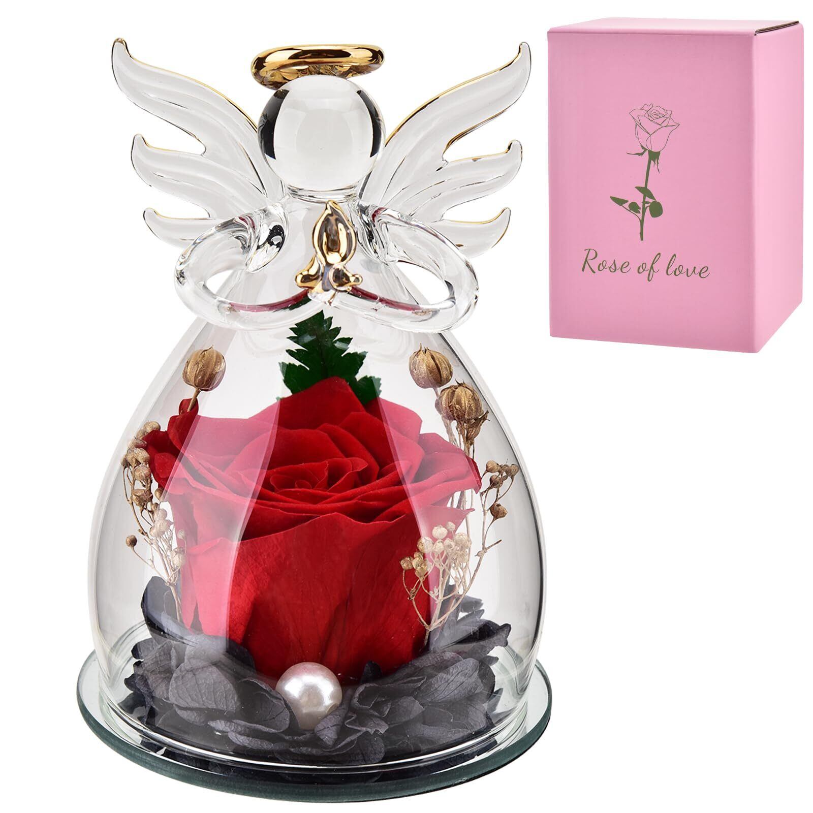 プリザーブドフラワー バラ プレゼント ブリザードフラワー ぶりざーどフラワ ギフト ガラスエンジェルドーム 母の日 結婚祝い 記念日 誕生日 白い日のプレゼント人気 入学 卒業いの贈り物 お見舞い(レッド)