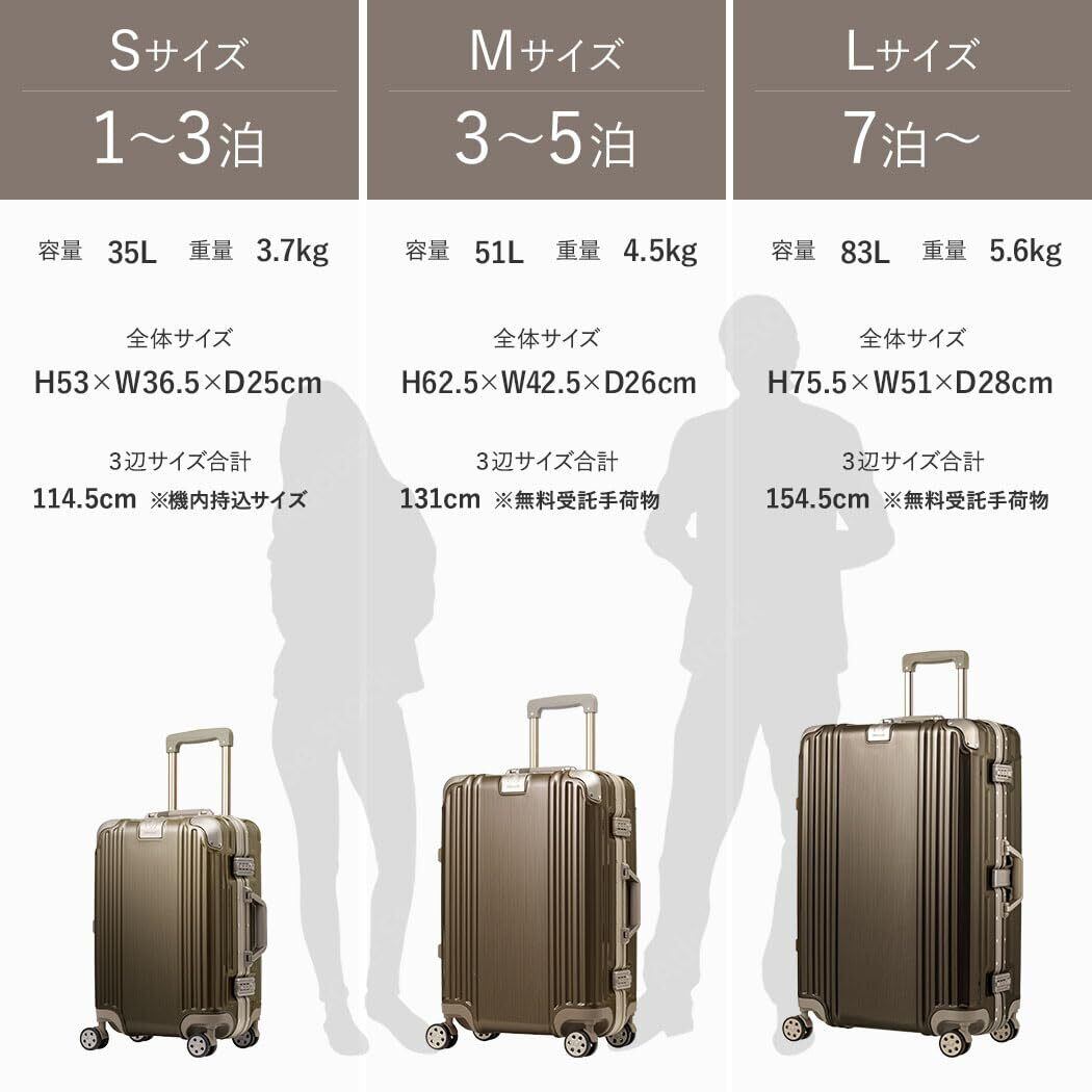 【クールで軽量そして、大容量】人気のアルミフレームを採用しており、ビジネスでもカジュアルでもシーンを選ばずに使用できます。スタイリッシュでありながら、重量は3.7kgと軽量、それでいて容量は35ℓと国内旅行や小旅行には十分な大きさです。