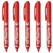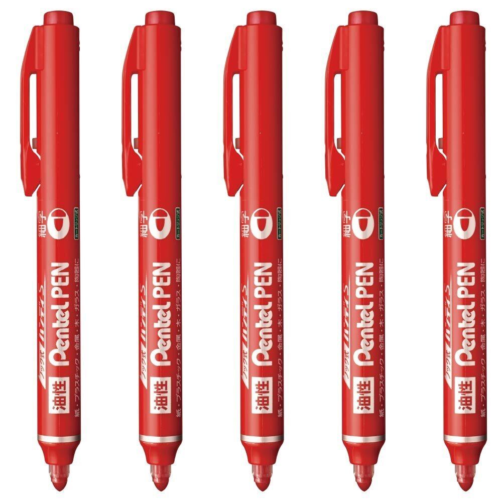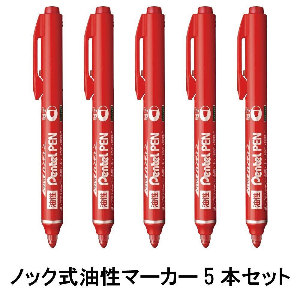 ぺんてる 油性ペン ノック式ハンディS Pentel PEN 丸芯・細字 赤 XNXS15-BP 5本