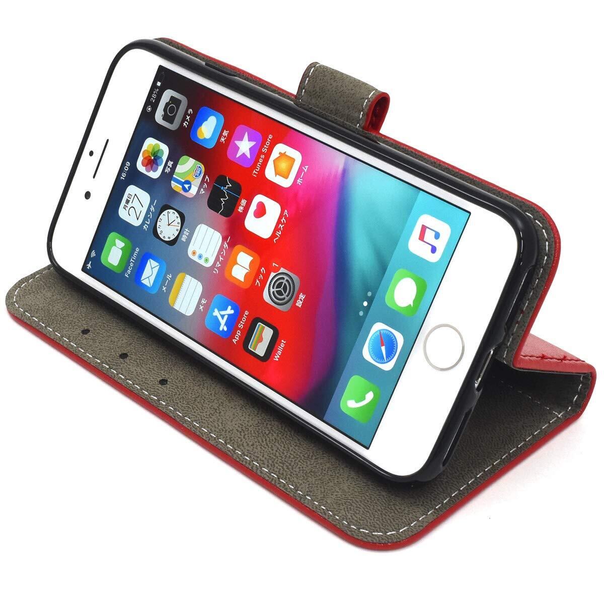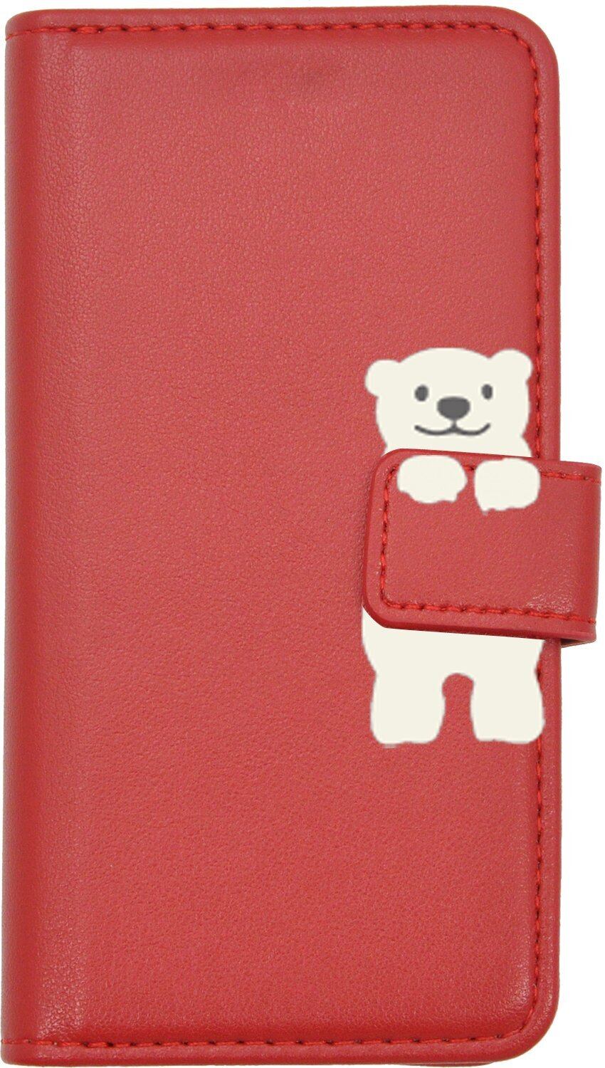 PLATA iPhone7対応 iPhone8対応 iPhoneSE第2世代対応 手帳型 ケース 動物 カラフル スマホケース ■ しろくま × レッド