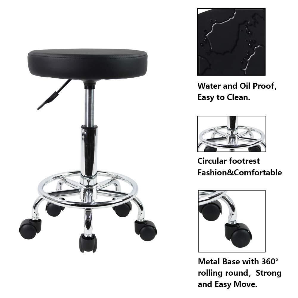 KKTONER 丸キャスター昇降スツール PUレザー フットレスト付き 回転椅子 高さ調節可能 バーカウンター作業製図椅子 オフィスチェア ブラック S サイズ (黒)