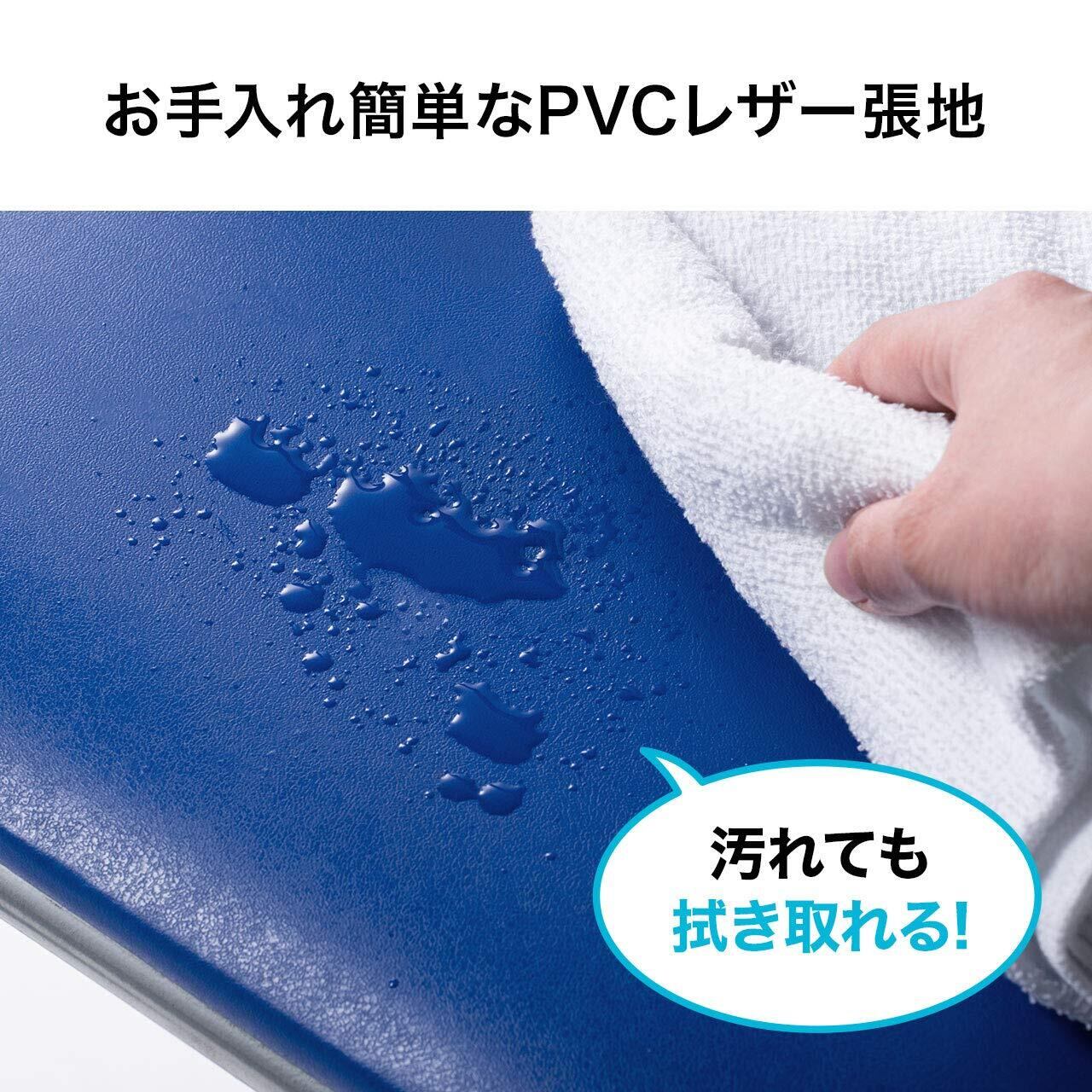 フレームは、丈夫なスチール製です。張地は、汚れてもサッとひと拭きで清潔に使用できる、PVC製です。