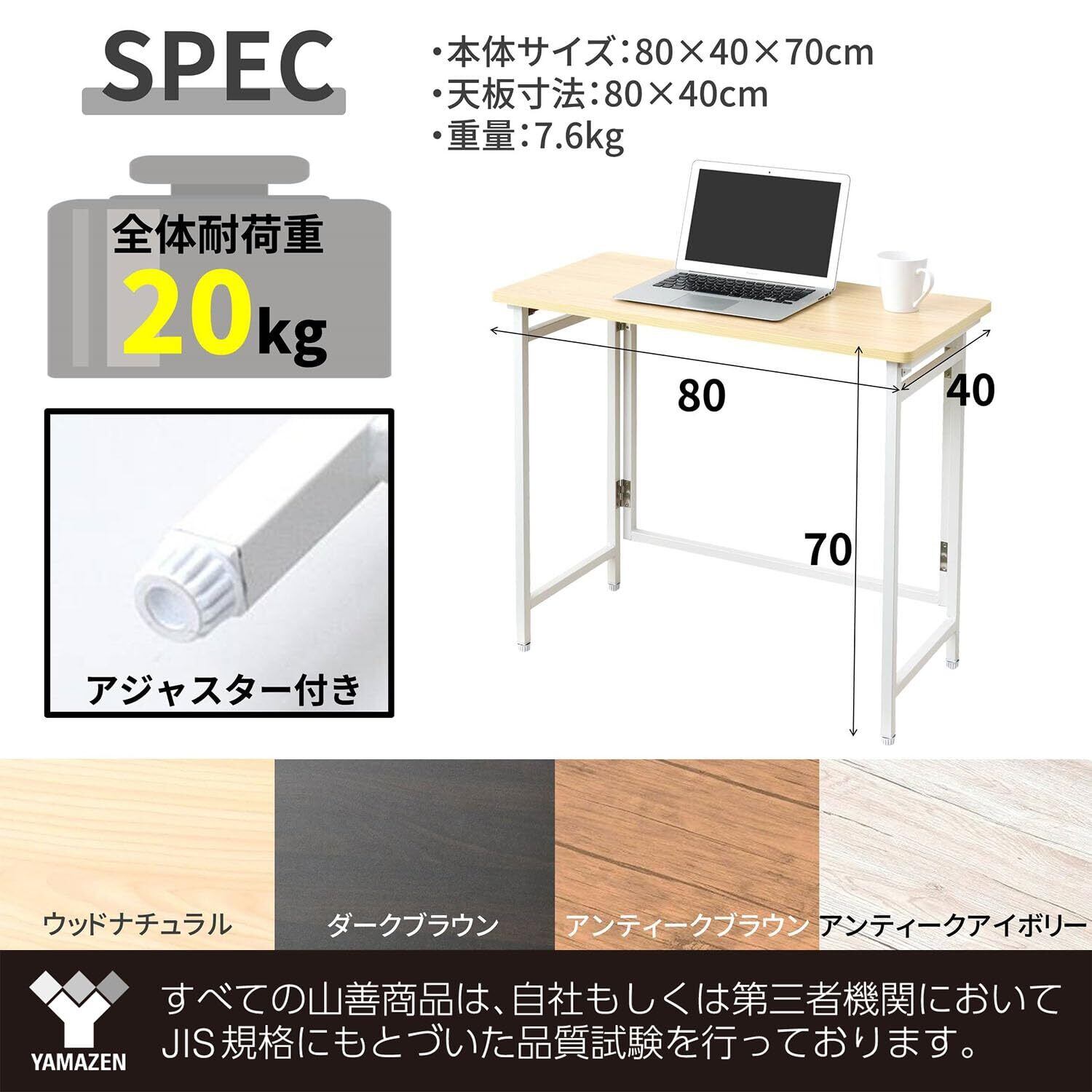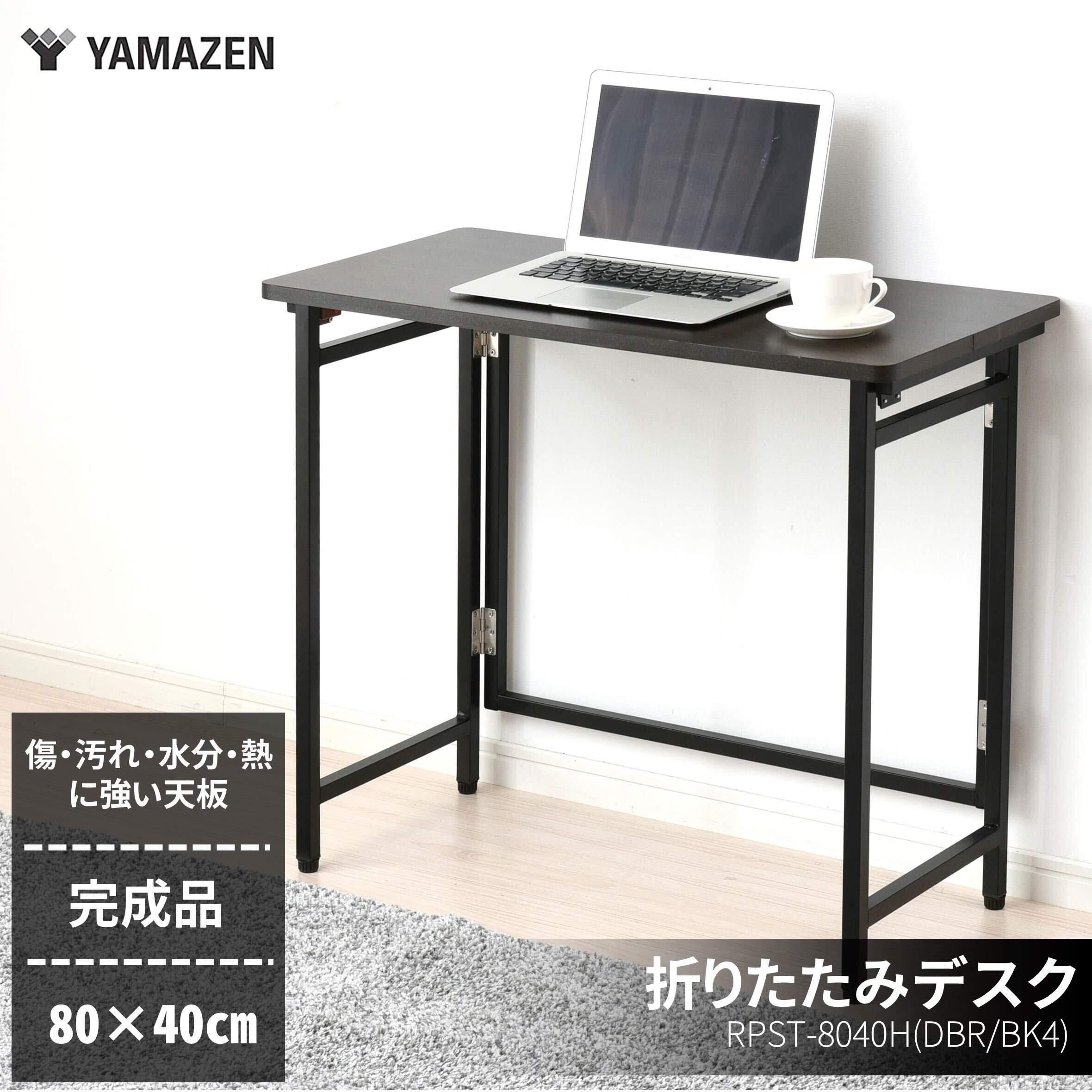 山善(YAMAZEN) 折りたたみ デスク 幅80×奥行40×高さ70cm コンパクト 傷・汚れ・水分・熱に強い天板(メラミン加工) なめらかな表面 角が丸い アジャスター付き 完成品 ダークブラウン/ブラック RPST-8040H(DBR/BK4) 在宅勤務