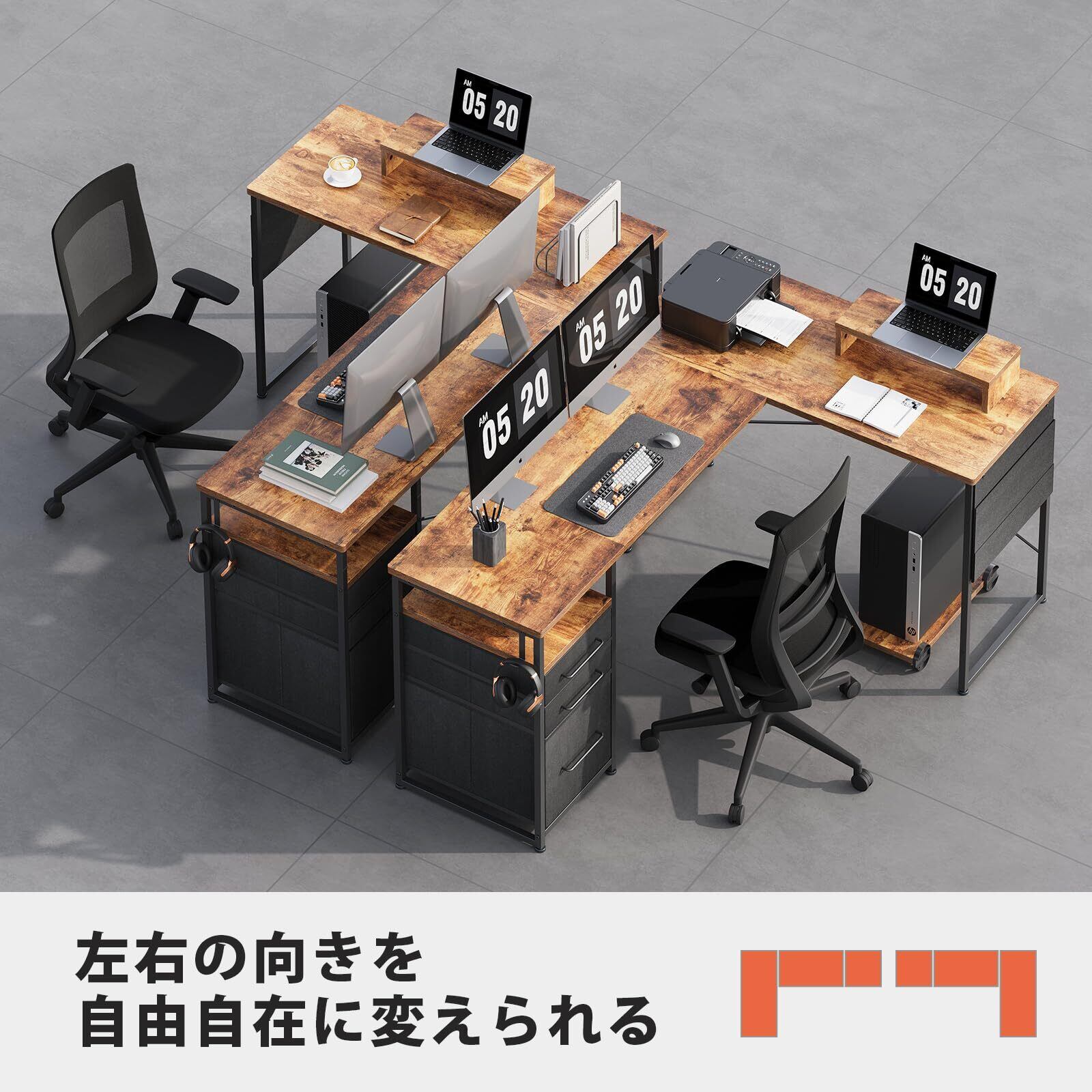 Maihail l字デスク 机 pcデスク ワークデスク コーナーデスク 勉強机 デスク 引き出し付き コーナーデスク 幅160cm×奥行112cm 左右入替可 ビンテージ